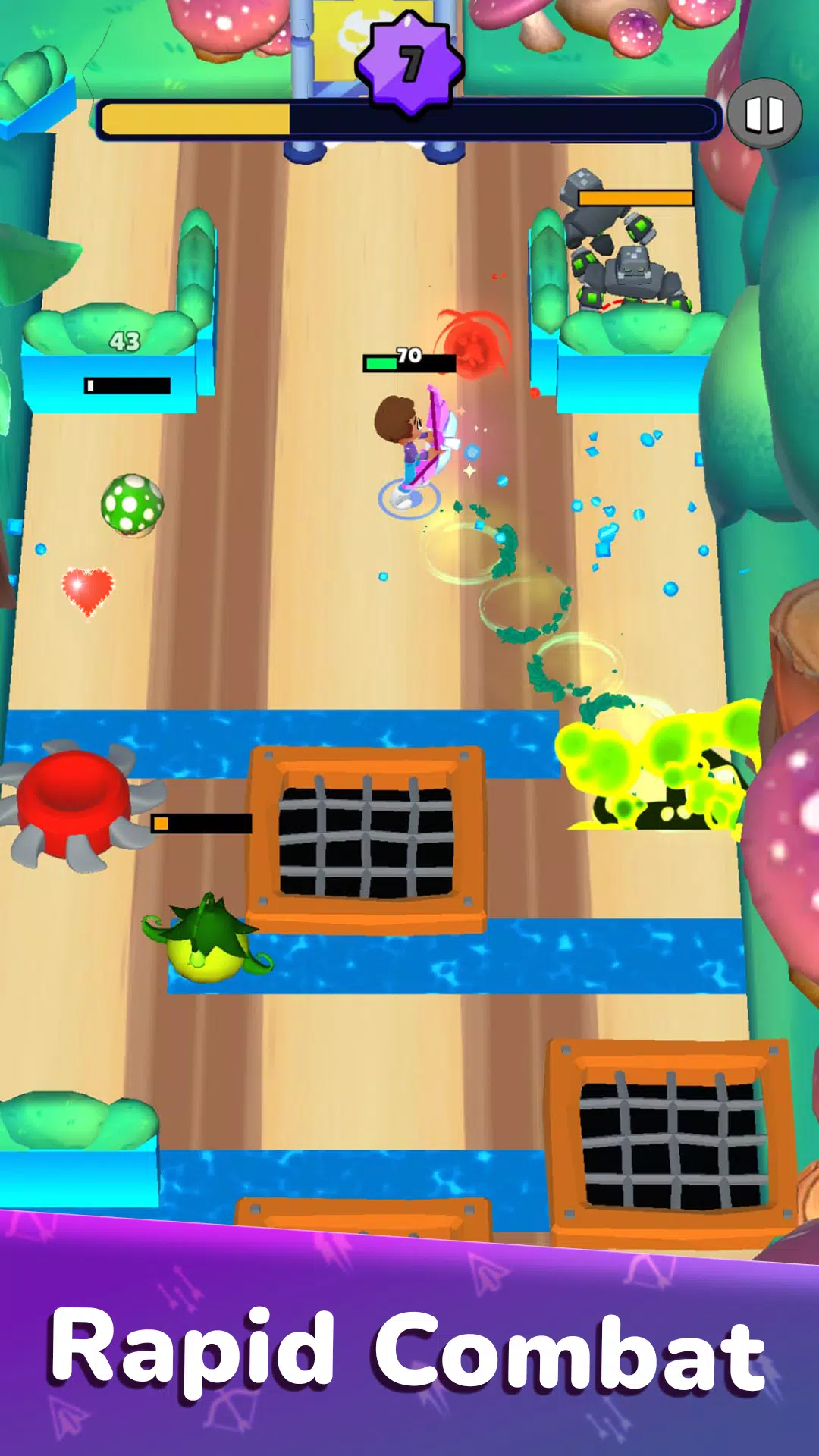 在绚丽多彩又危机四伏的世界中,与一波又一波的敌人战斗,躲避致命陷阱,掌握强大的技能,一路披荆斩棘。
