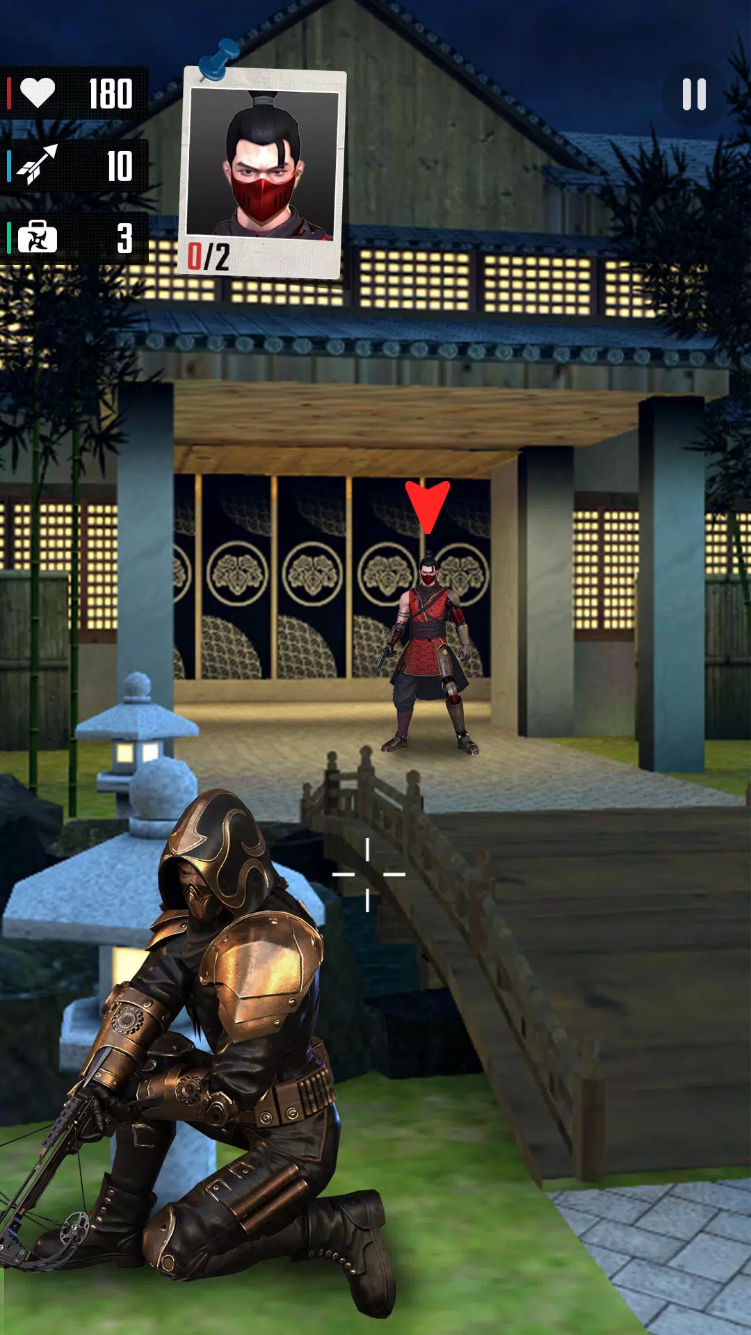 当拉开的弓弦与忍者灵巧的身手相遇,《忍者猎杀》将带给你肾上腺素飙升的暗影狩猎体验,融合了潜行与射击的精髓。作为一款休闲的第一人称射击游戏,它将忍者主题与现代枪战的精髓巧妙结合,你将扮演一名夜行猎手,穿梭于各异的战场,用弓箭和弩箭布下致命陷阱,并通过永无止境的挑战解锁无限可能。