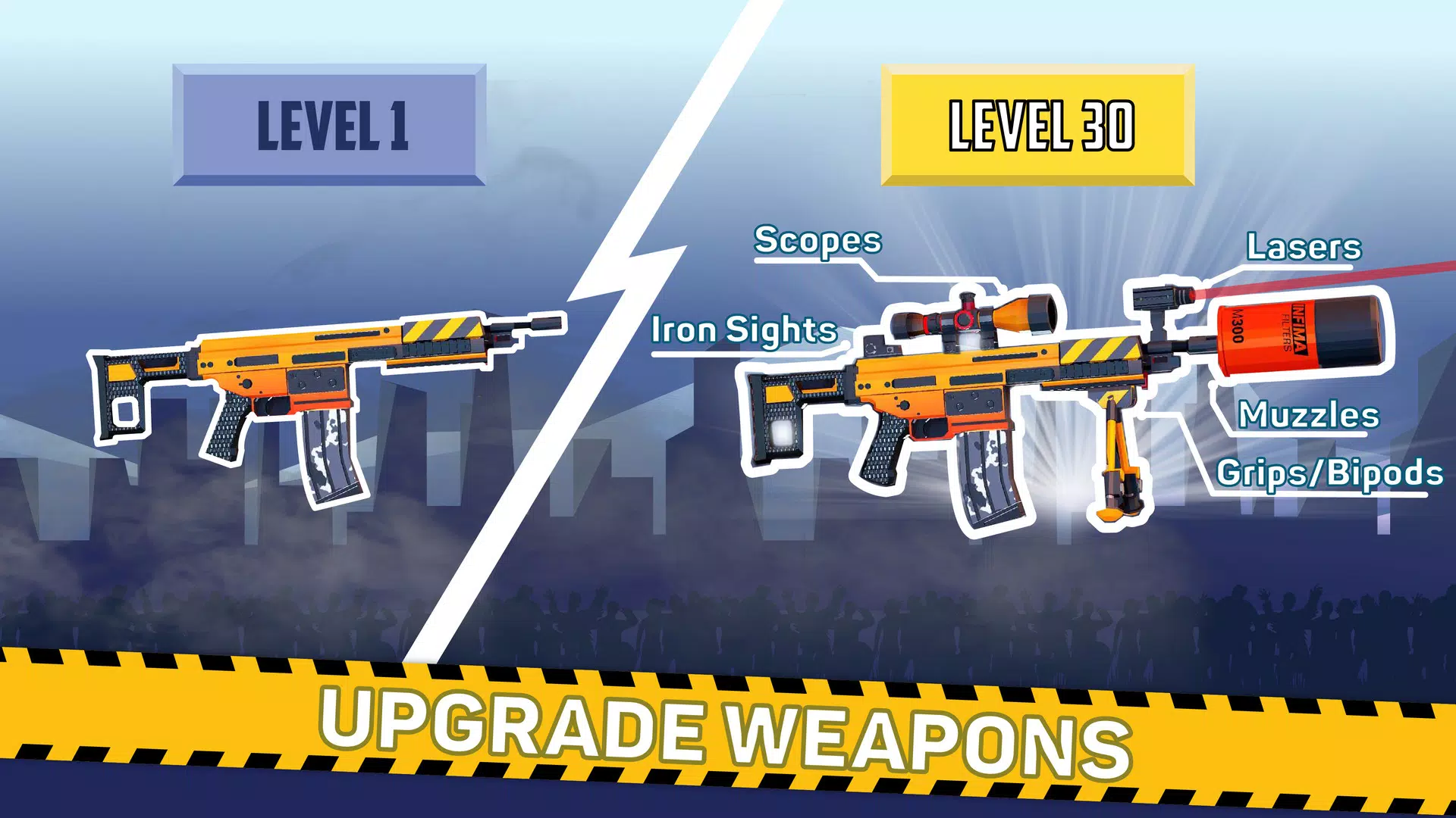 • 所有武器均可完全自定义 – 可试戴瞄准镜、握把、激光枪口、握把和脚架