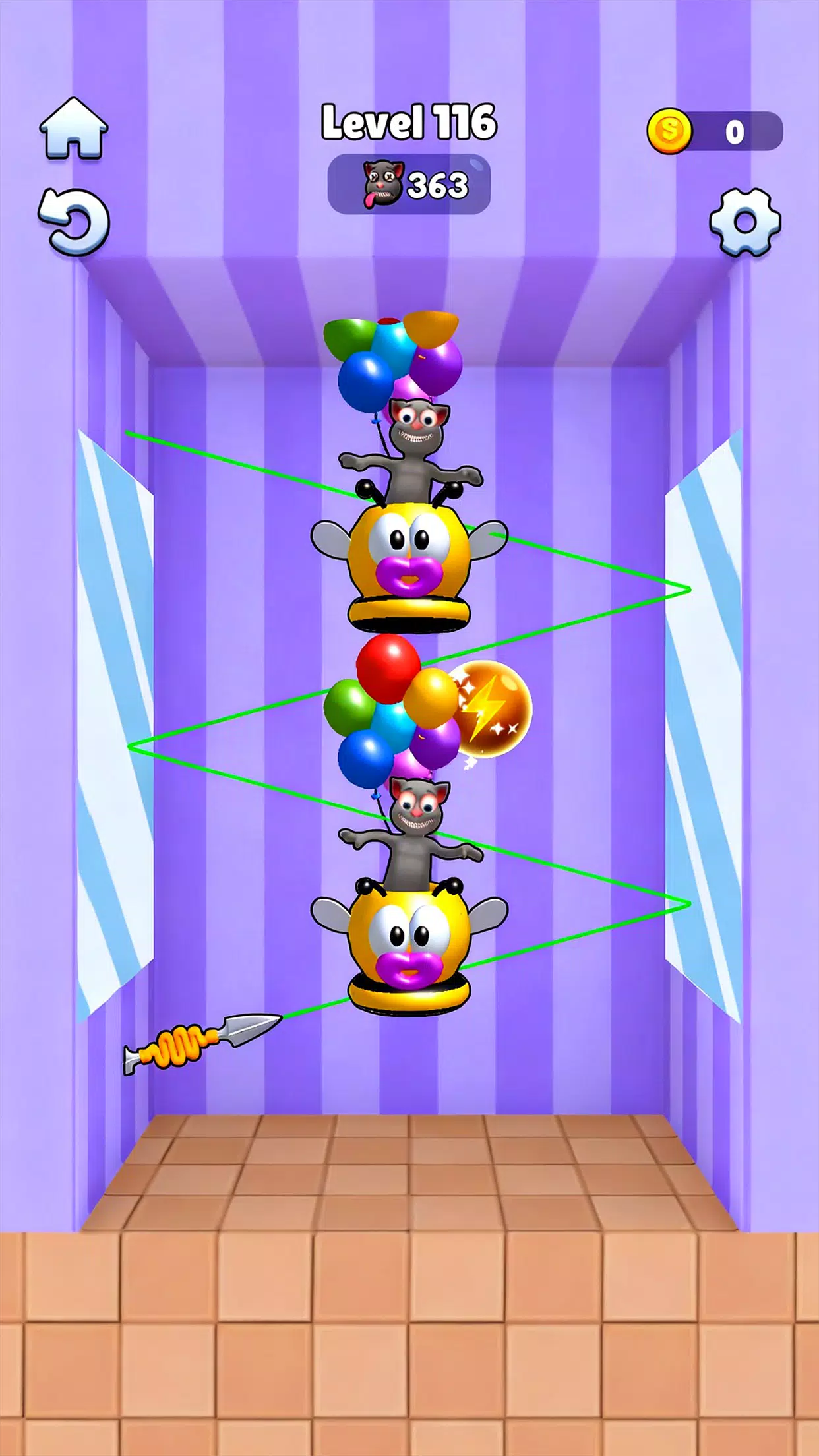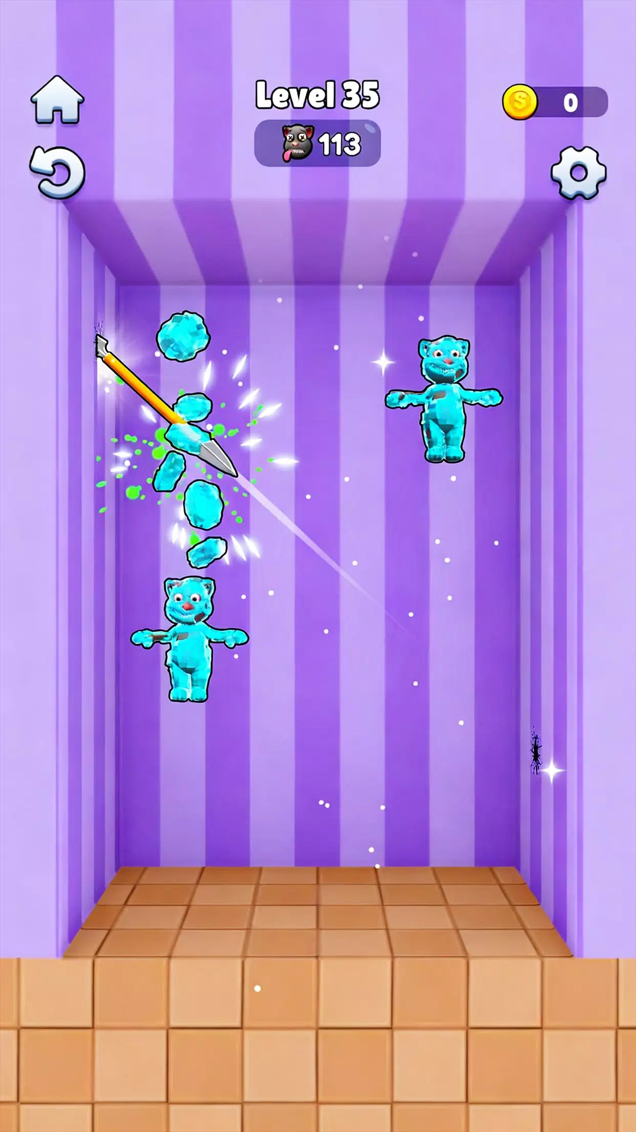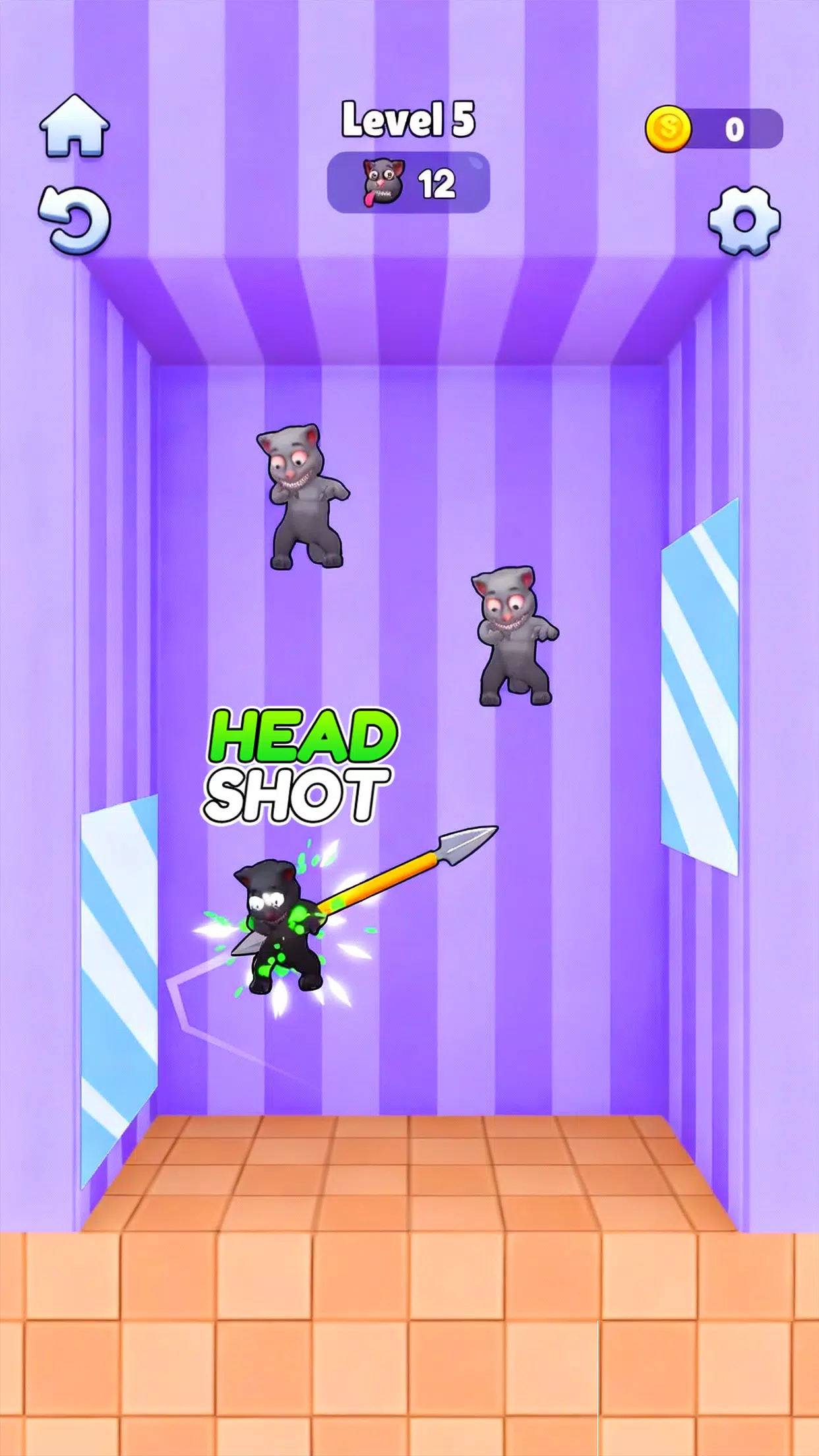 投掷前观察敌人的动向。仔细瞄准,并利用墙壁反弹击中难以击中的目标。收集星星解锁新关卡,升级更强大的武器。