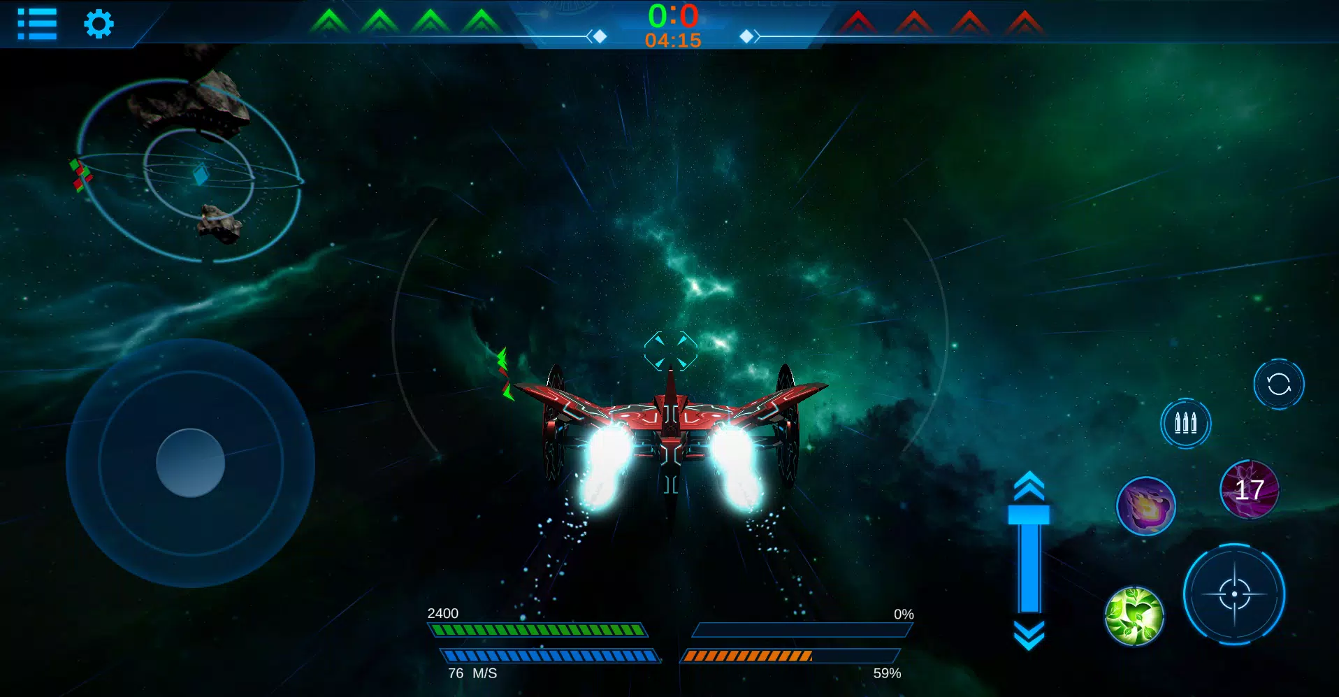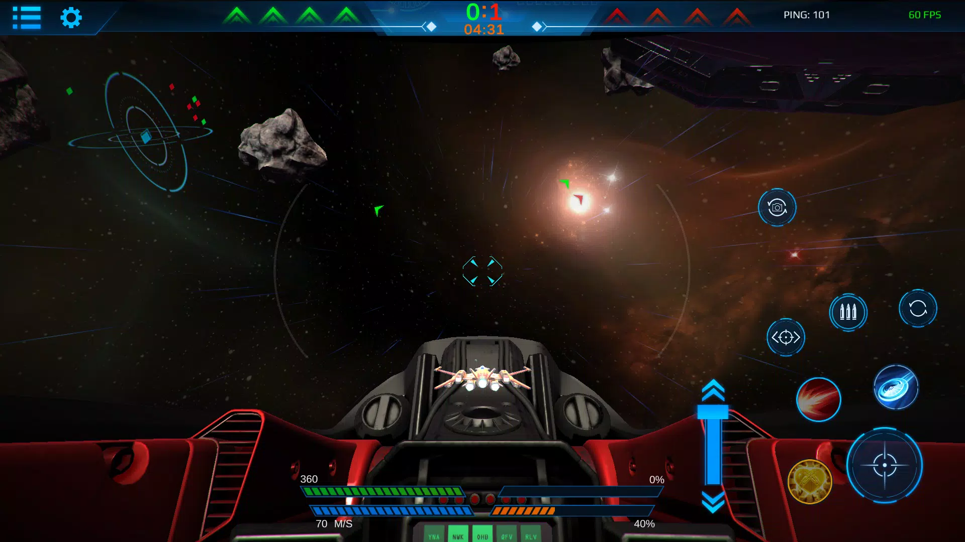 《太空冲突》是一款在线多人太空飞船游戏,您可以在不同的实时游戏模式和离线任务中享受激烈的星际战斗。 获取越来越强大的宇宙飞船并将其能力升级到极限。 探索每艘星舰的特殊武器,用它们的全部力量给你的对手带来惊喜。