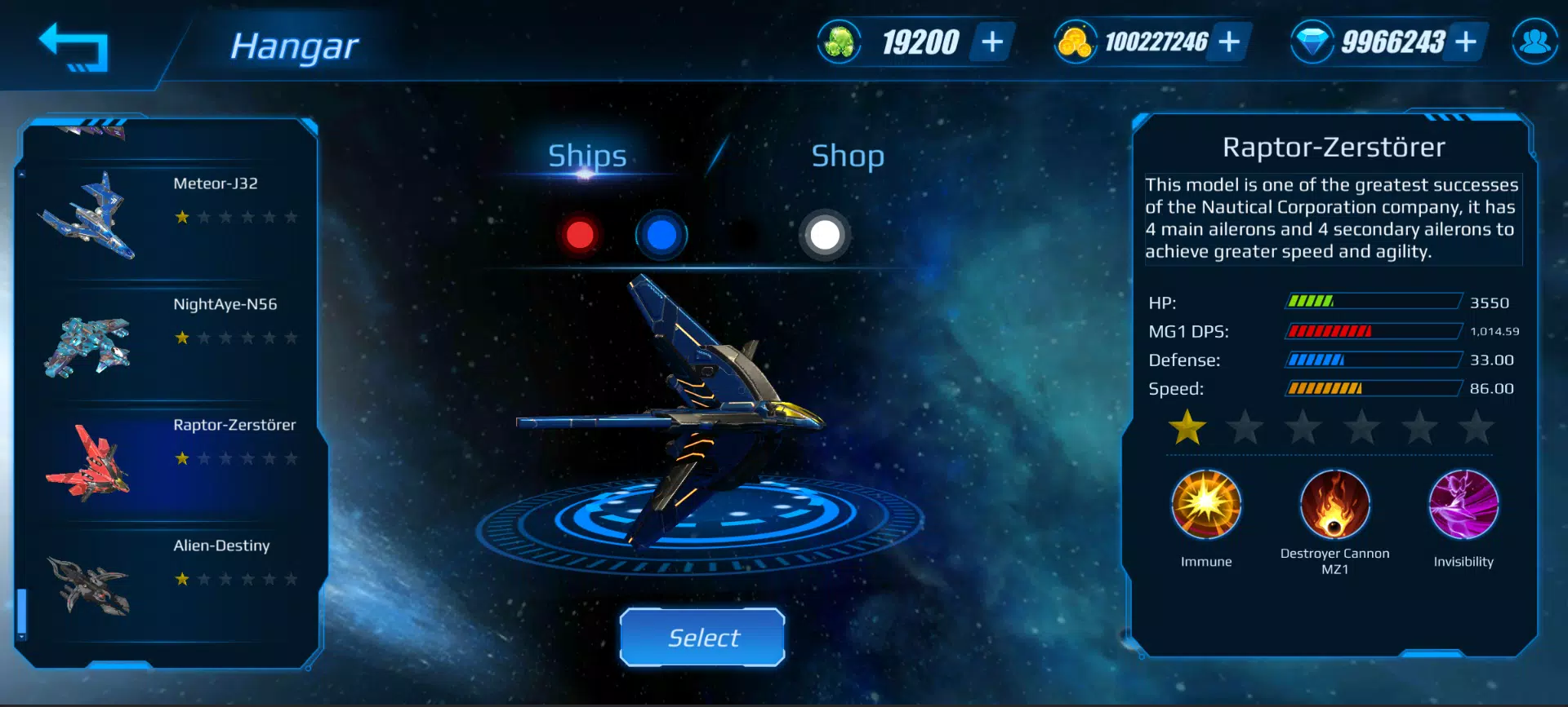 游戏中你会发现超过30艘战斗飞船,每艘都配有特殊武器,你可以增强它们来面对更强大的敌人,它们分为三个等级:青铜、白银和黄金,你可以将它们的等级提升至6星。 新武器和星际飞船将包含在未来的更新中。
