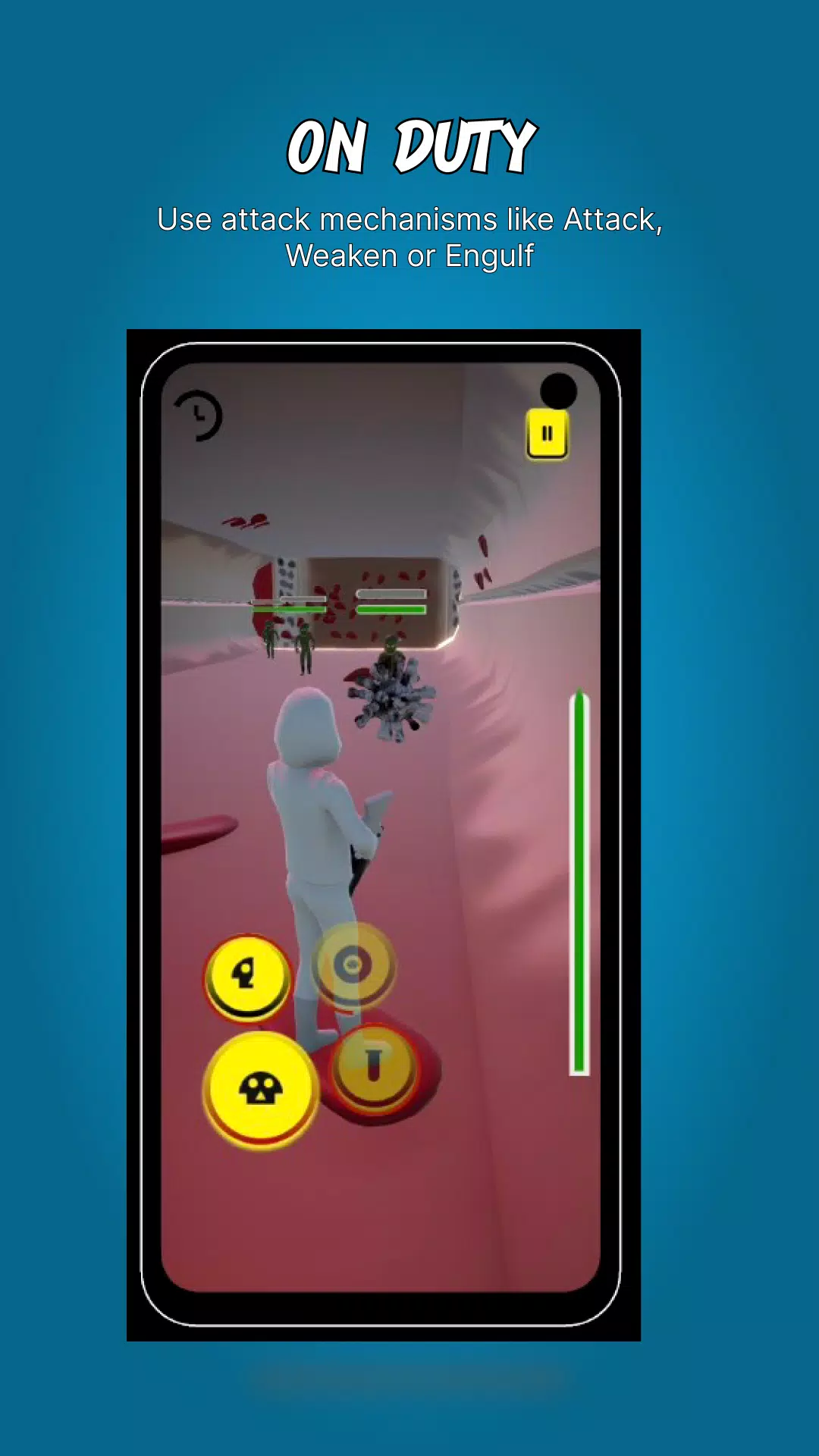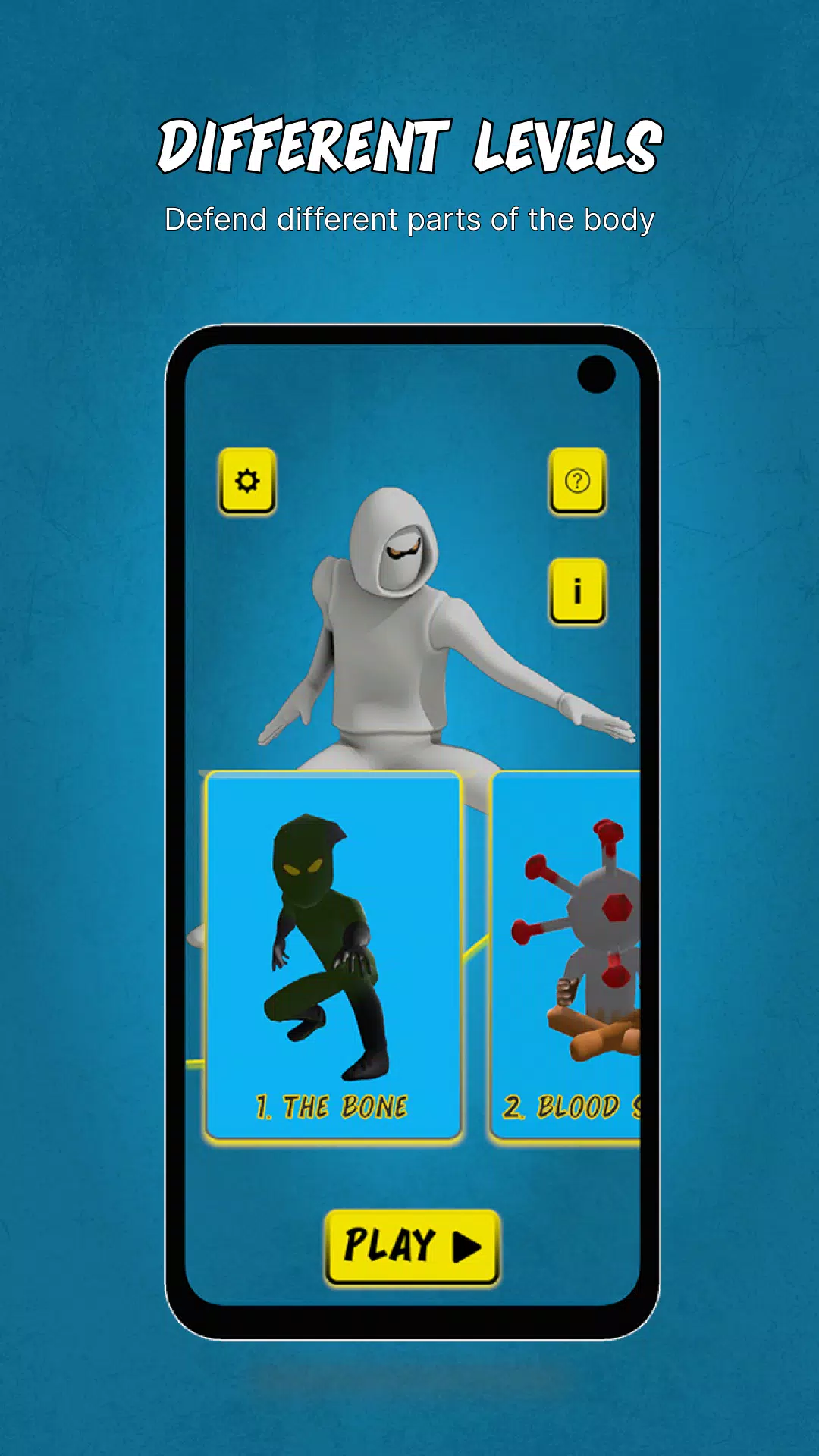 在这款激动人心的动作游戏中,你将扮演白细胞——人体强大的防御系统。闯入三个独特的关卡:错综复杂的骨髓、快速流动的血流和复杂的大脑。你的任务?消灭病毒、细菌和毒素等有害威胁,维护身体健康!