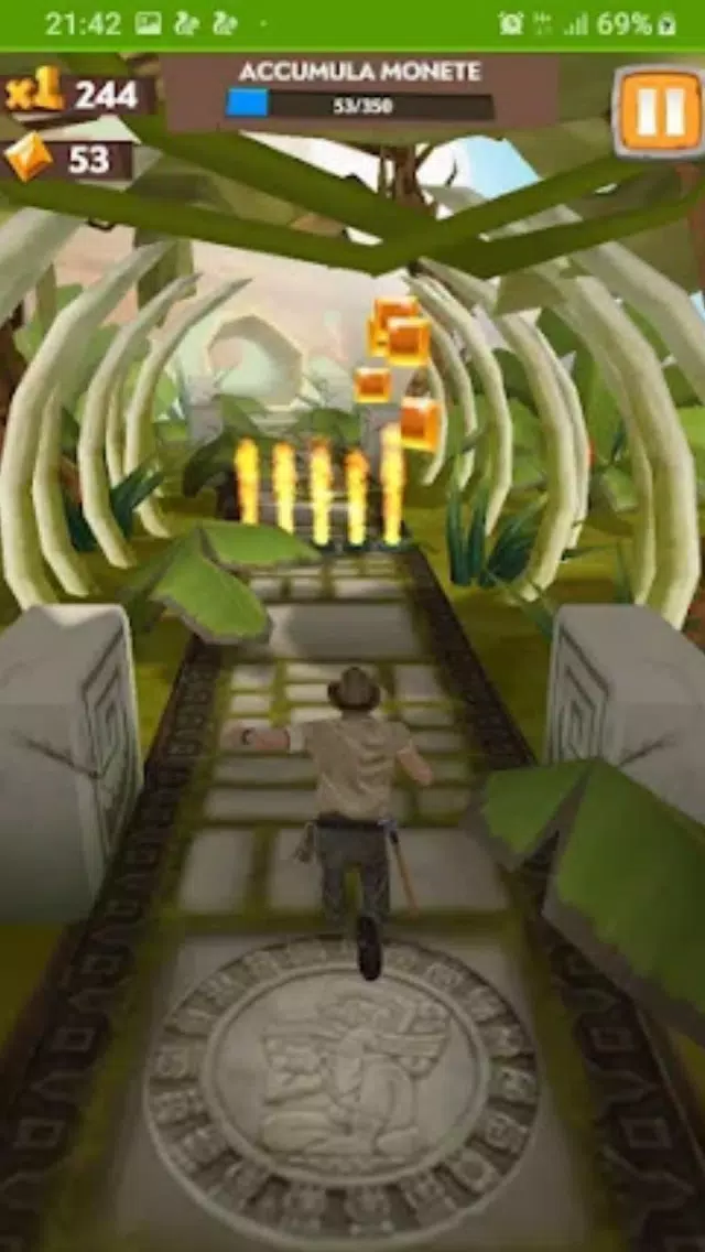你从神庙偷走了被诅咒的神像,现在必须逃命,躲避紧追不舍的邪恶魔猴。在古老的神庙墙壁和陡峭的悬崖上飞驰,考验你的反应能力。滑动屏幕转弯,跳跃和滑行以避开障碍物,收集金币购买强化道具,解锁新角色,看看你能跑多远!