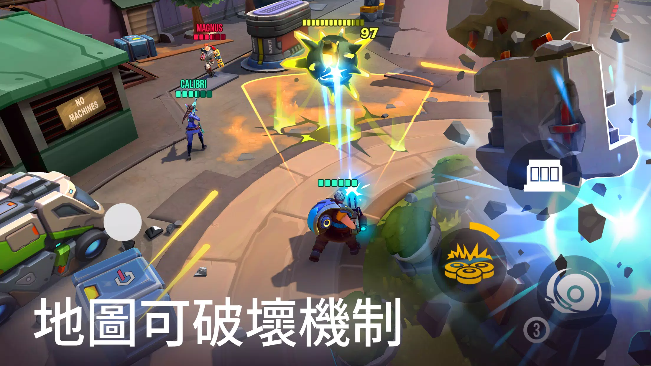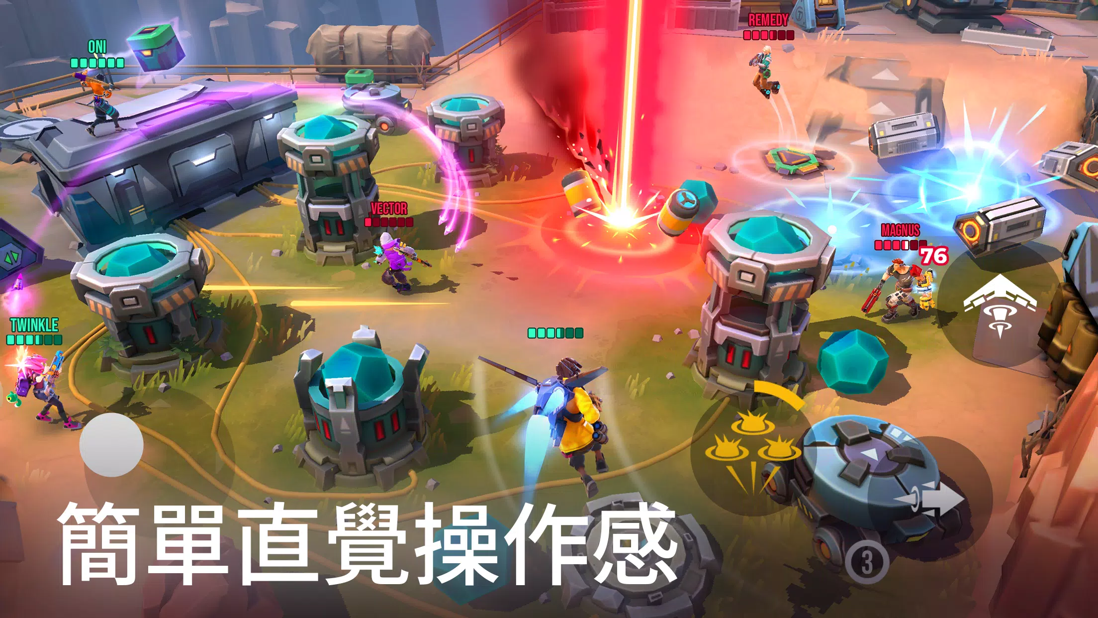 Ricochet Squad》是一款节奏明快的3v3 PvP俯视角射击游戏,背景设定在一个充满活力、混乱与掌控相互交织的未来宇宙。在这款紧张刺激、兼顾策略与操作的第三人称对战游戏和动作游戏中,你将纵身投入终极战斗体验,在战场上与其他玩家正面交锋。从众多英雄中选择你的专属战将,他们各自拥有独特的超能力和鲜明的战斗风格,将重新定义PvP动作游戏的体验。凭借简洁的操控和直观的自动瞄准功能,任何人都能轻松上手,享受这款射击小游戏的竞技乐趣——无论你是经验丰富的英雄射击游戏高手,还是初入战场的新兵。