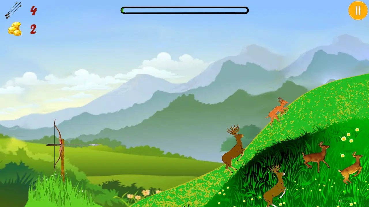 射箭鸟猎人的第五级是鹿狩猎,鹿跑过青山,你射击他们。