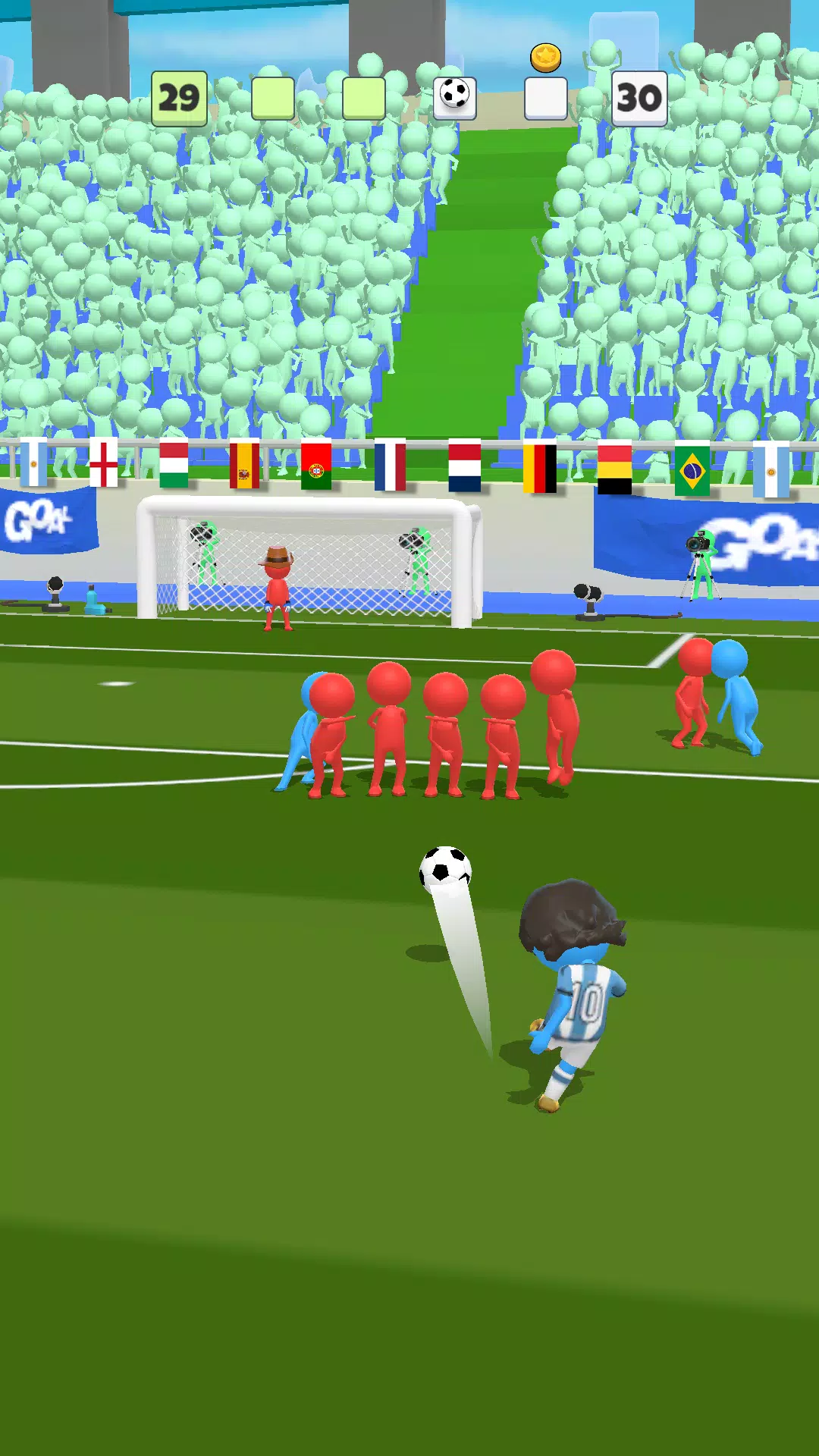 画线踢球!完全掌控球的方向和轨迹。踢球、射门,攻入精彩绝伦的进球!忘记越位和犯规吧。在这里,您的小前锋可以用头、脚,甚至背射破门!在快节奏、激动人心的比赛中,自由发挥,走向荣耀。体验惊艳的视觉效果和流畅的动画,让每一个进球都充满史诗感。无论您是8岁还是80岁,《Super Goal》都易于上手,操作简单却极具挑战,乐趣无穷。
