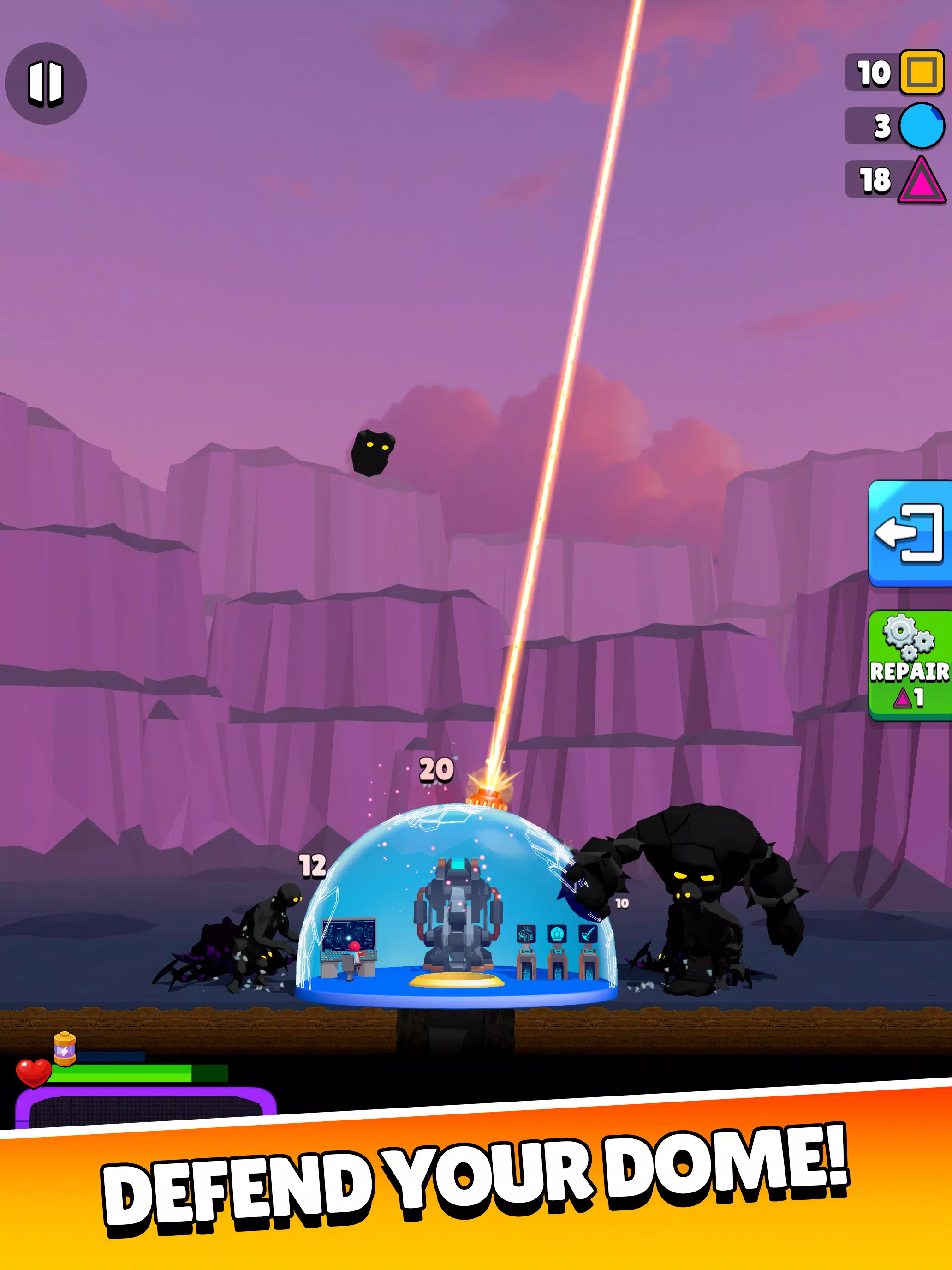 – 使用强大的防御系统保护你的穹顶免受外星威胁。