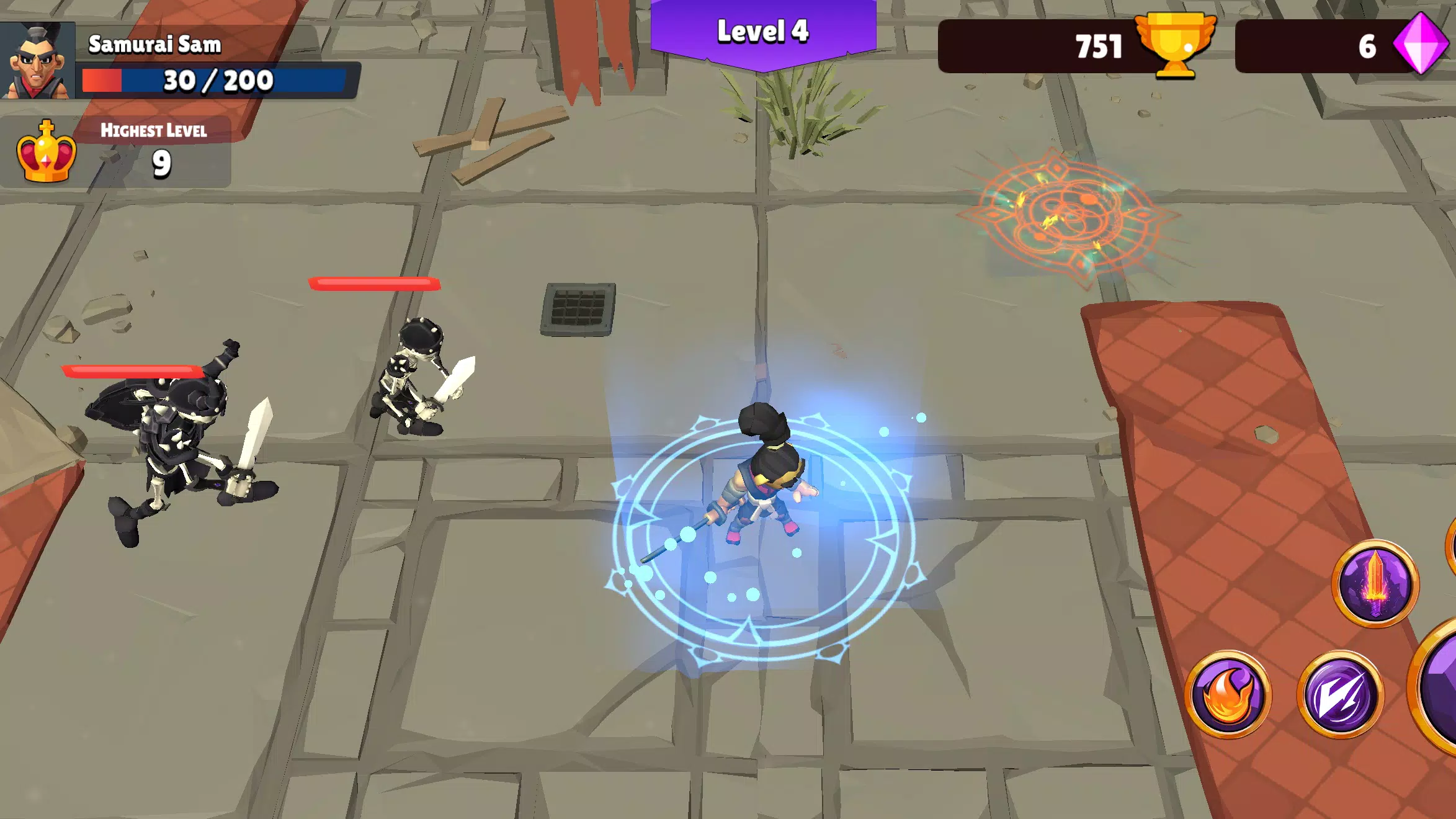 击退一波又一波的骷髅大军,完成地图目标,解锁全新挑战,并通过永久升级不断强化你的武士。