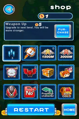 游戏内商店:用你辛苦赚来的金币购买强力道具,例如护盾、磁力推进器和高级武器包。