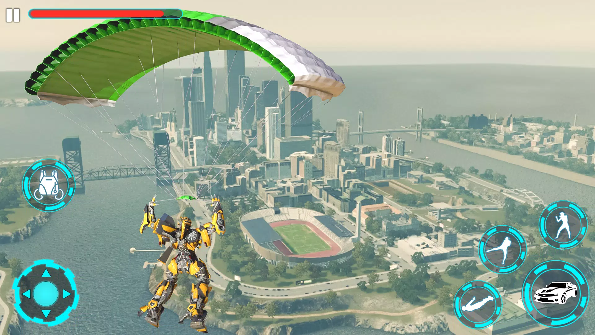 这款汽车变形机器人游戏有两种截然不同的游戏模式。一种是探索城市并完成任务。此模式下会有不同的任务。