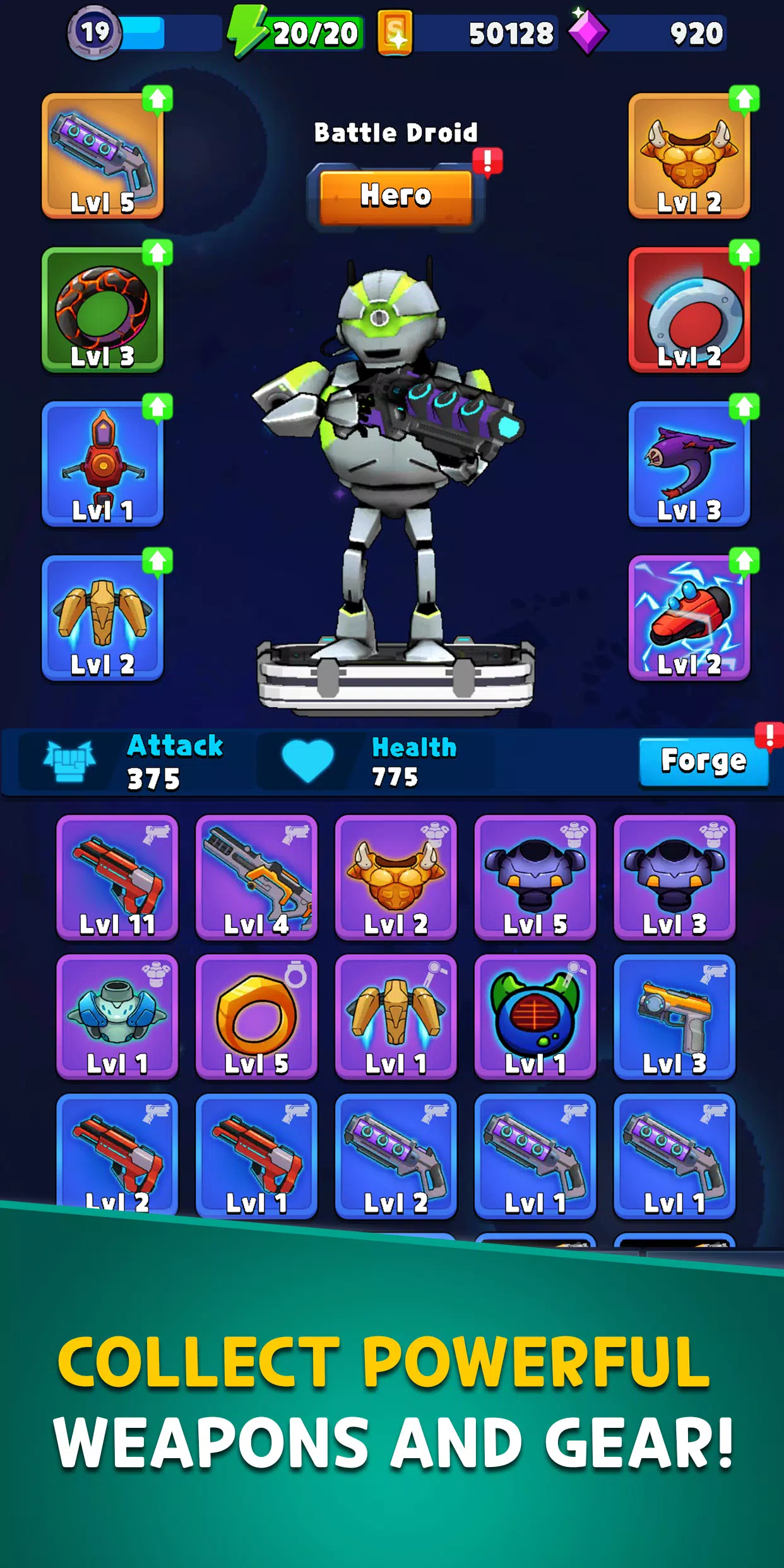 * 从各种强大的武器、盔甲和酷炫的科幻装备中选择,定制你的英雄
