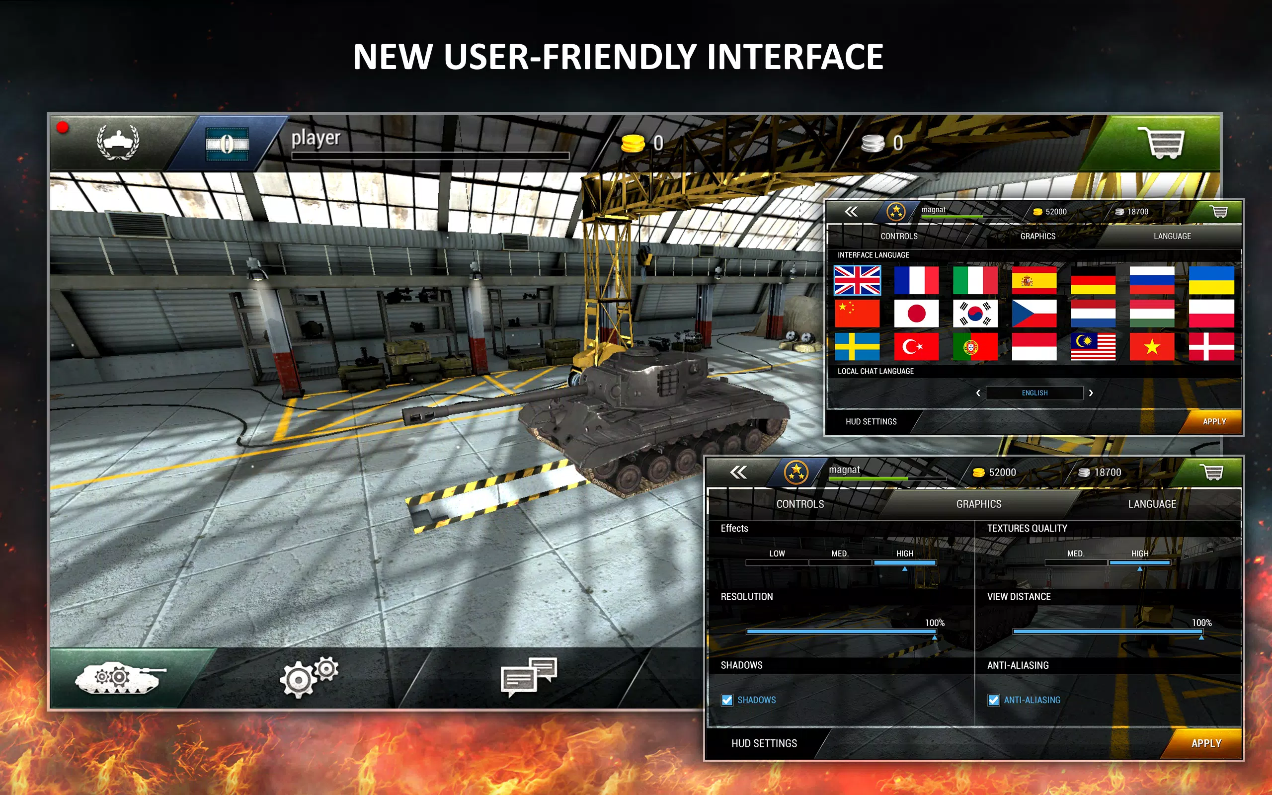 精彩的游戏在等你加入!你可以先通过训练模式和机器人捉对厮杀,然后在联网游戏中与来自全世界的其他玩家一较高下,秀出自己的高超技巧!将你的坦克变成一辆死亡机器吧!立刻开战!