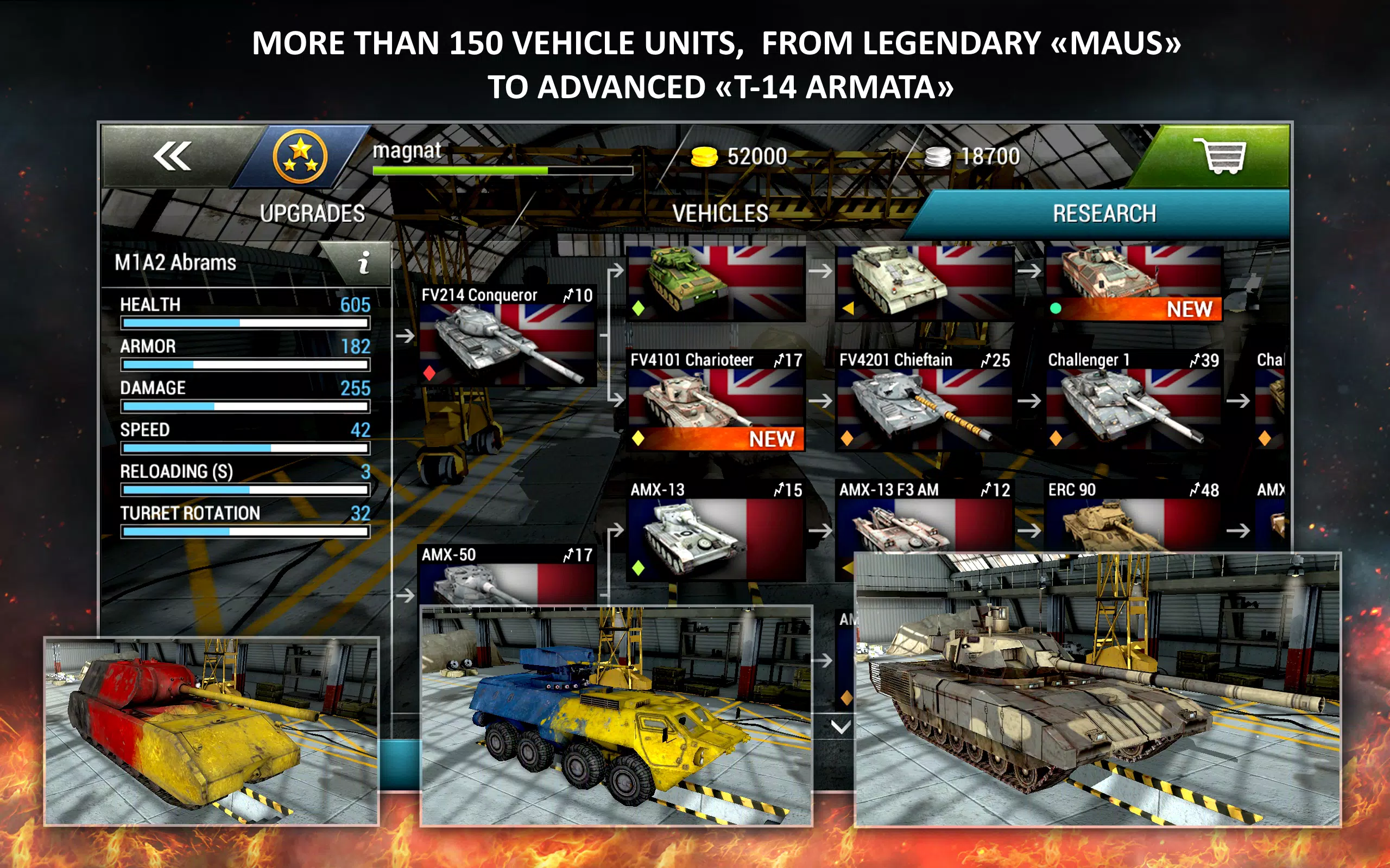 * 150 多种坦克型号,包括传奇的鼠式坦克和高级 T-14 主战坦克;