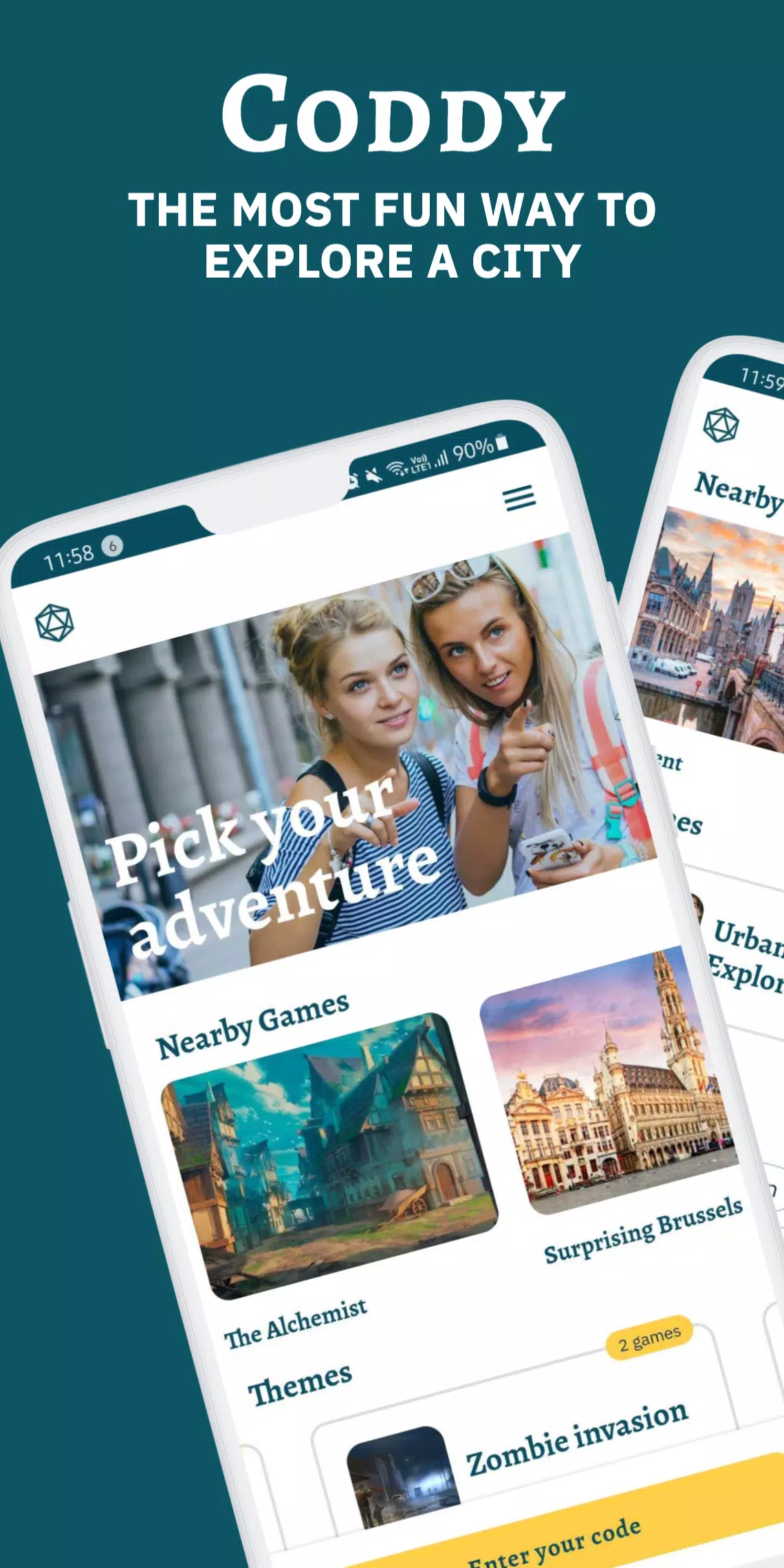 下载应用程序,访问我们的网站 www.coddygames.com,选择游戏和你想玩的城市。之后,你会收到一封电子邮件,其中包含一个代码,可在应用程序中输入。