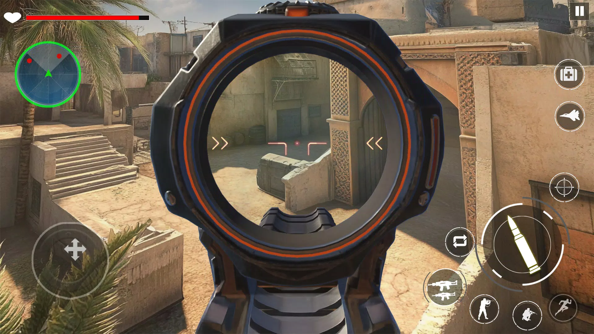 准备好。目的。火!这是一款惊心动魄的逼真3D射击枪游戏。进入充满动作的战斗和身临其境的枪战游戏。你是特种武器和战术小组中训练有素的精英成员。无论你喜欢狙击任务、团队死亡竞赛,还是激烈的生存战斗,FPS 游戏都能提供惊心动魄的 FPS 战斗体验!你将配备冲锋枪、狙击步枪和眩晕手榴弹,准备好击倒敌人,同时在全球各地执行秘密任务,消灭邪恶集团。扮演一名精英特种部队士兵,配备现代武器和枪械游戏专家的战术技能。是时候装载你的枪支了!在这款以动作为导向的第一人称射击游戏中,不要让队友落后!现在开始射击,让子弹飞起来!