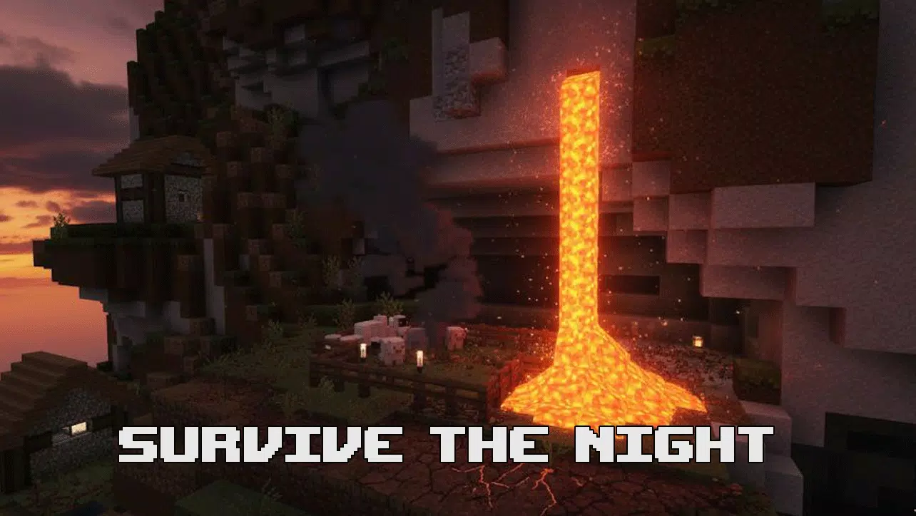 生存模式:收集材料,制作武器,并在夜晚抵御怪物的威胁。