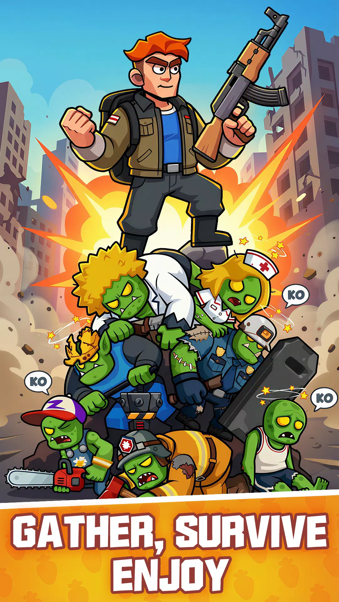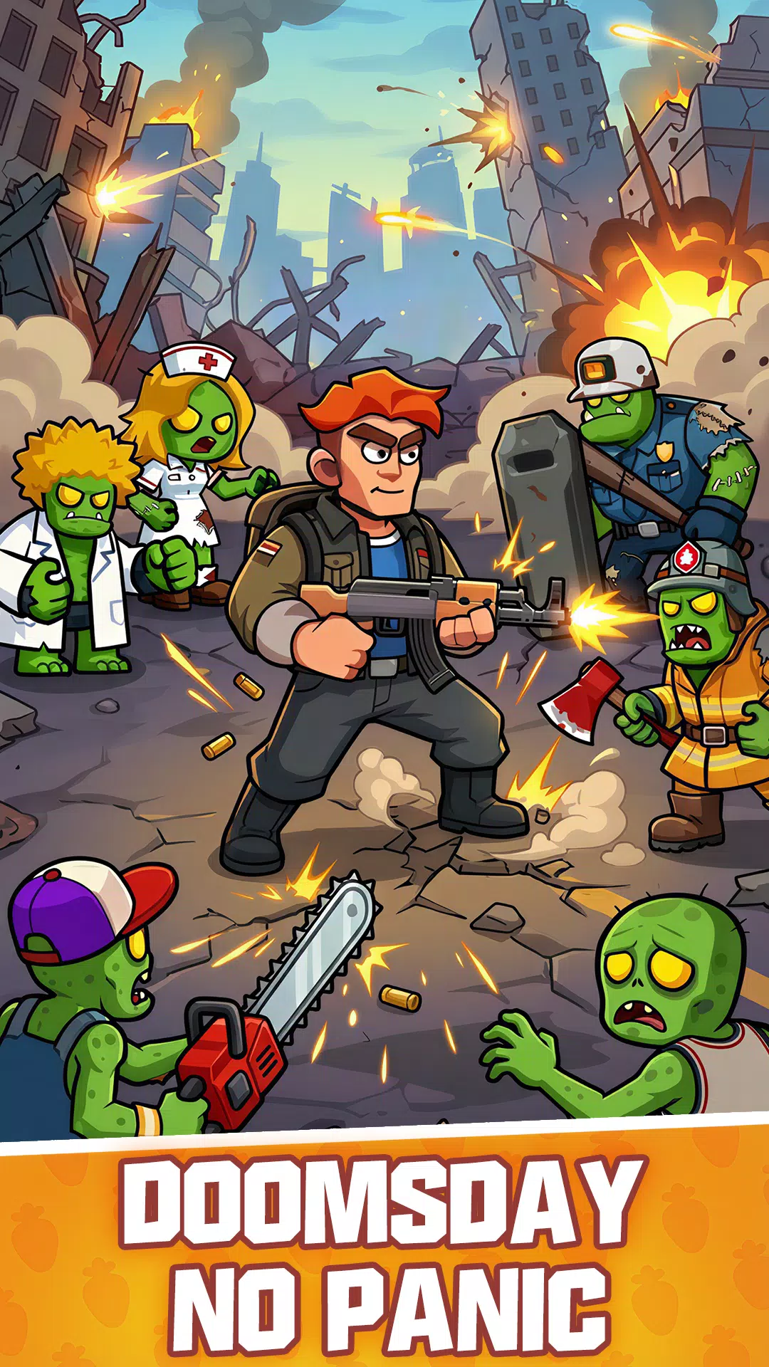 击败不同类型的僵尸(小心护士僵尸!)来获得经验值。提升你的角色等级以增强你的生命值、攻击力和速度。成为终极僵尸猎人!
