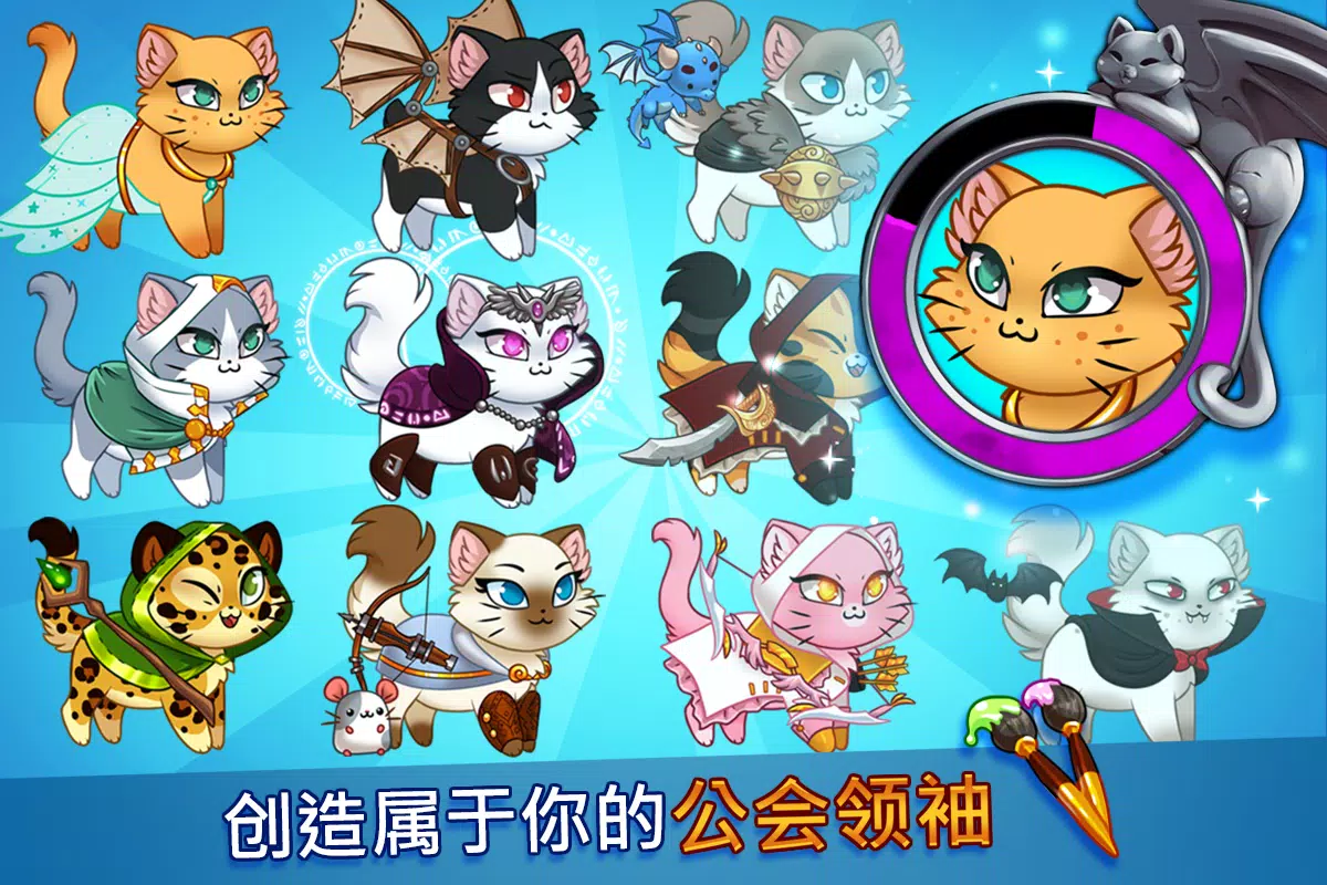 当你离开游戏前将你的英雄设置为战斗。返回时即可收集报酬,升级你的英雄们并收集史诗猫咪。你也可以随时加入战斗并帮助你的英雄!