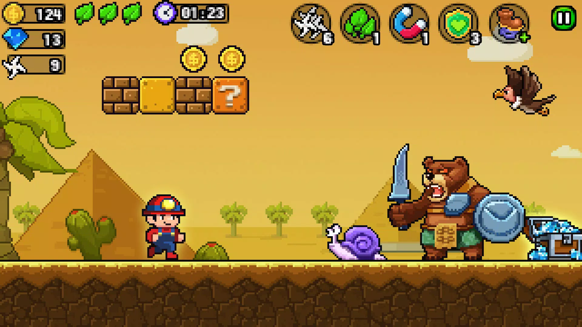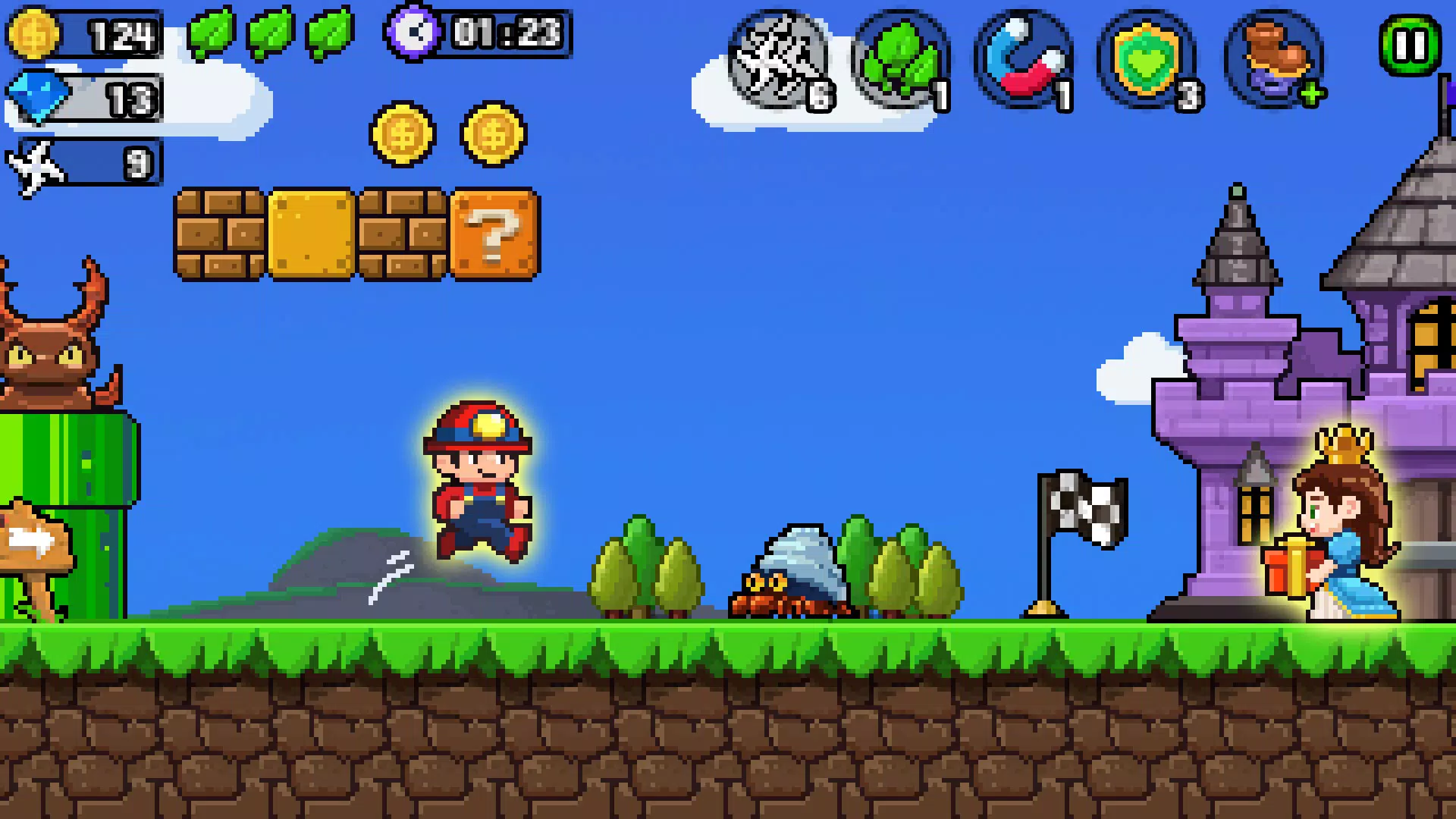 你的任务是帮助鲍勃穿越神秘的丛林,克服重重障碍,击败超级邪恶的怪物,并在冒险的终点救出美丽的公主。