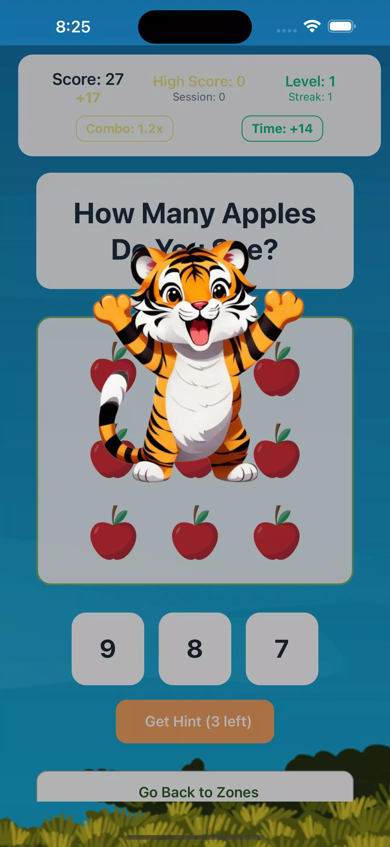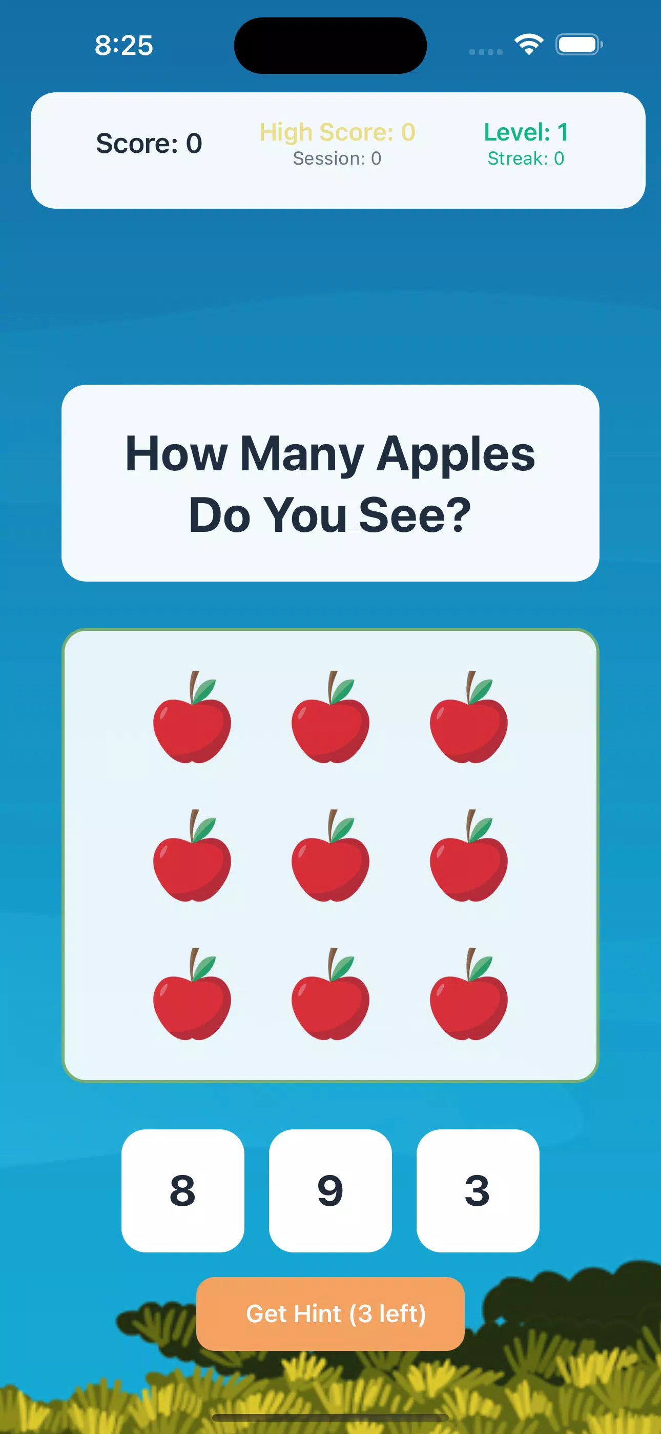 限时游戏:争分夺秒,在时间耗尽前数清所有苹果,速度和准确性赢得星星。