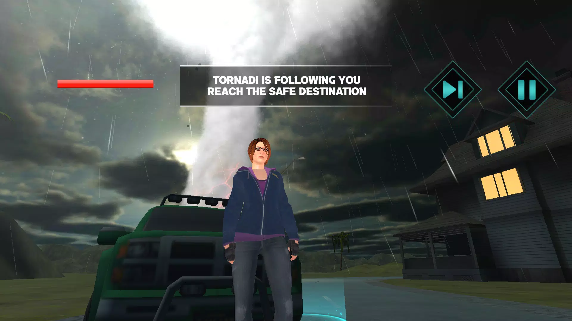在这款龙卷风游戏中,您必须完成多项任务。作为龙卷风猎人,你还必须营救平民和动物,在龙卷风袭来之前引导他们到达安全地点。在生存任务中,在龙卷风危险区坚持规定的时间即可取得胜利。