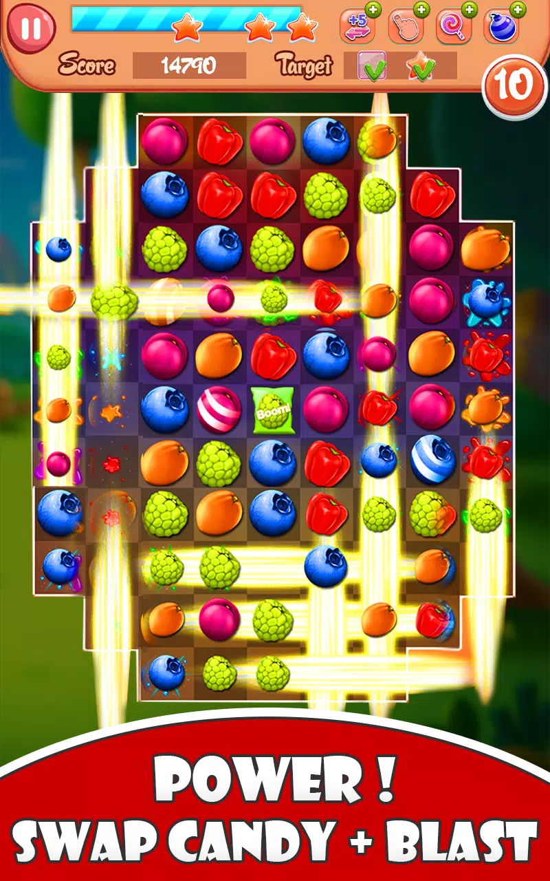 水果游戏:2026 年三消游戏,您可以畅玩最舒缓、最精彩的糖果消除游戏,搭配色彩缤纷的棒棒糖和其他糖果,没有时间限制,更有强大的免费道具助您畅玩。2026 年全新水果粉碎游戏,以水果为主题,为您带来甜蜜的爆炸冒险!交换并匹配各种可爱的节日主题糖果,粉碎拼图碎片、充满葡萄糖的姜饼人、美丽的铃铛和红色星星,尽在 2026 年全新游戏中。立即开始您的甜蜜糖果冒险之旅,匹配并滑动美味的糖果,制造酥脆的爆炸,并在 2026 年全新游戏中解锁丰厚的奖励和道具。
