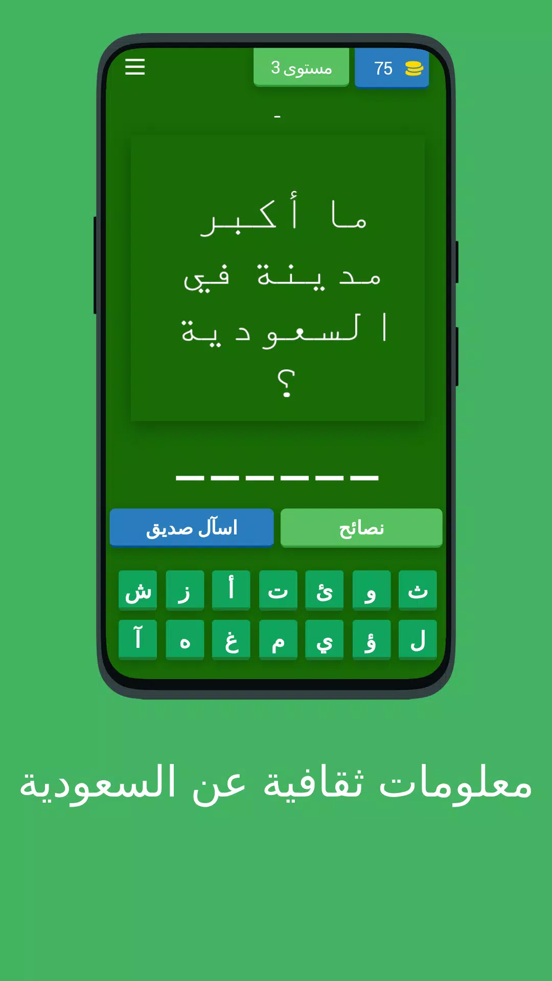 💡 不要错过通过专门为您设计的免费游戏来提高您对沙特阿拉伯的了解的机会!凭借简单易用的界面,游戏体验将变得更加美妙。立即下载并享受! 😊