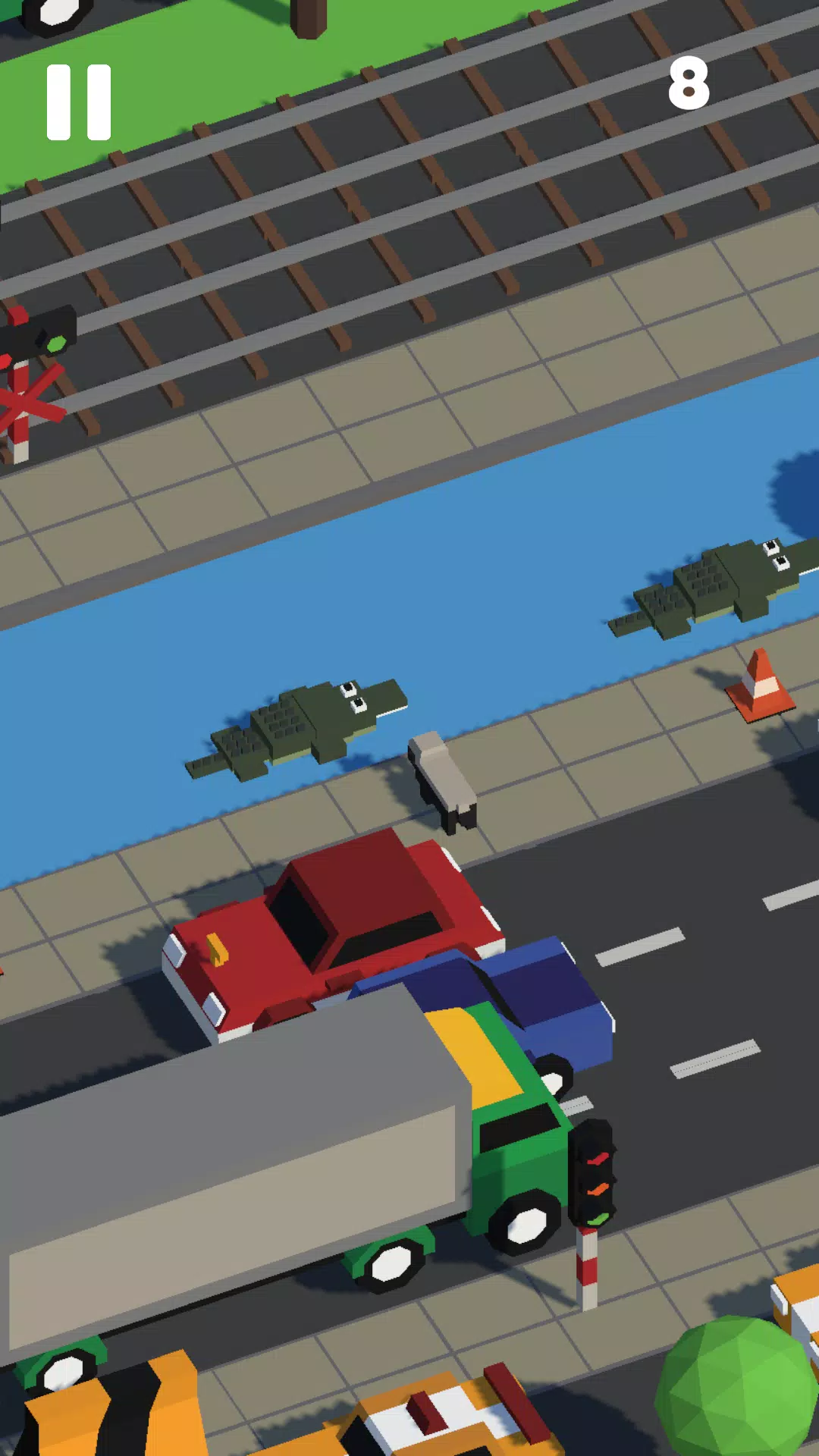 在这款快节奏的街机障碍赛道游戏中,躲避汽车、火车和各种奇葩障碍。