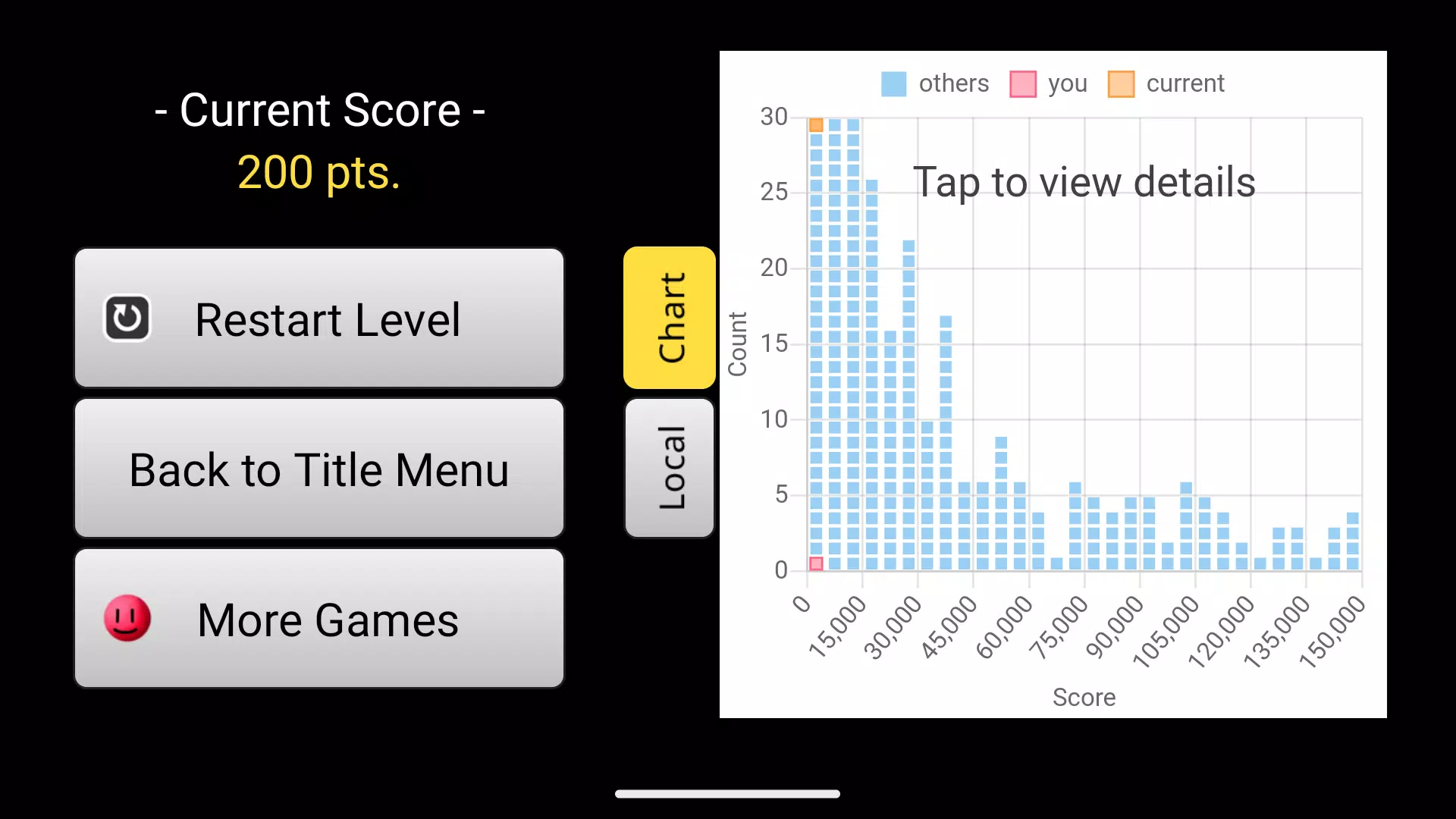 蔬菜怪兽来袭! 你扮演的是Papi先生(红球怪)。 点击屏幕底部的按钮进行移动和跳跃。 跳到怪兽身上击败它们。 – 如果你在未落地的情况下击败了多个怪兽,你将获得更多分数。 – 如果你从侧面或底部撞到怪兽,游戏就结束了。 – 怪兽分别是洋葱、南瓜、胡萝卜和西红柿。 本游戏包含两个级别——普通级别和波动级别(更高级别需要通过得分解锁)。