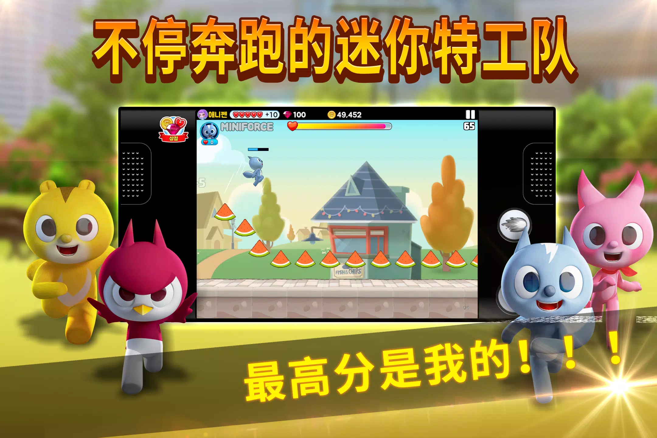 通过障碍和挑战到最高分,迷你特工队奔跑!