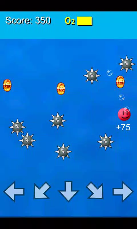 帕皮先生(红球人)潜入海中收集金币! 按下底部的箭头按钮来控制他。 – 他在单次潜水中获得的金币越多,您获得的分数就越高。 – 如果他撞到带刺的球,游戏就会结束。 – 潜水时,氧气 (O2) 计量表会减少。计量表耗尽后,游戏就会结束。