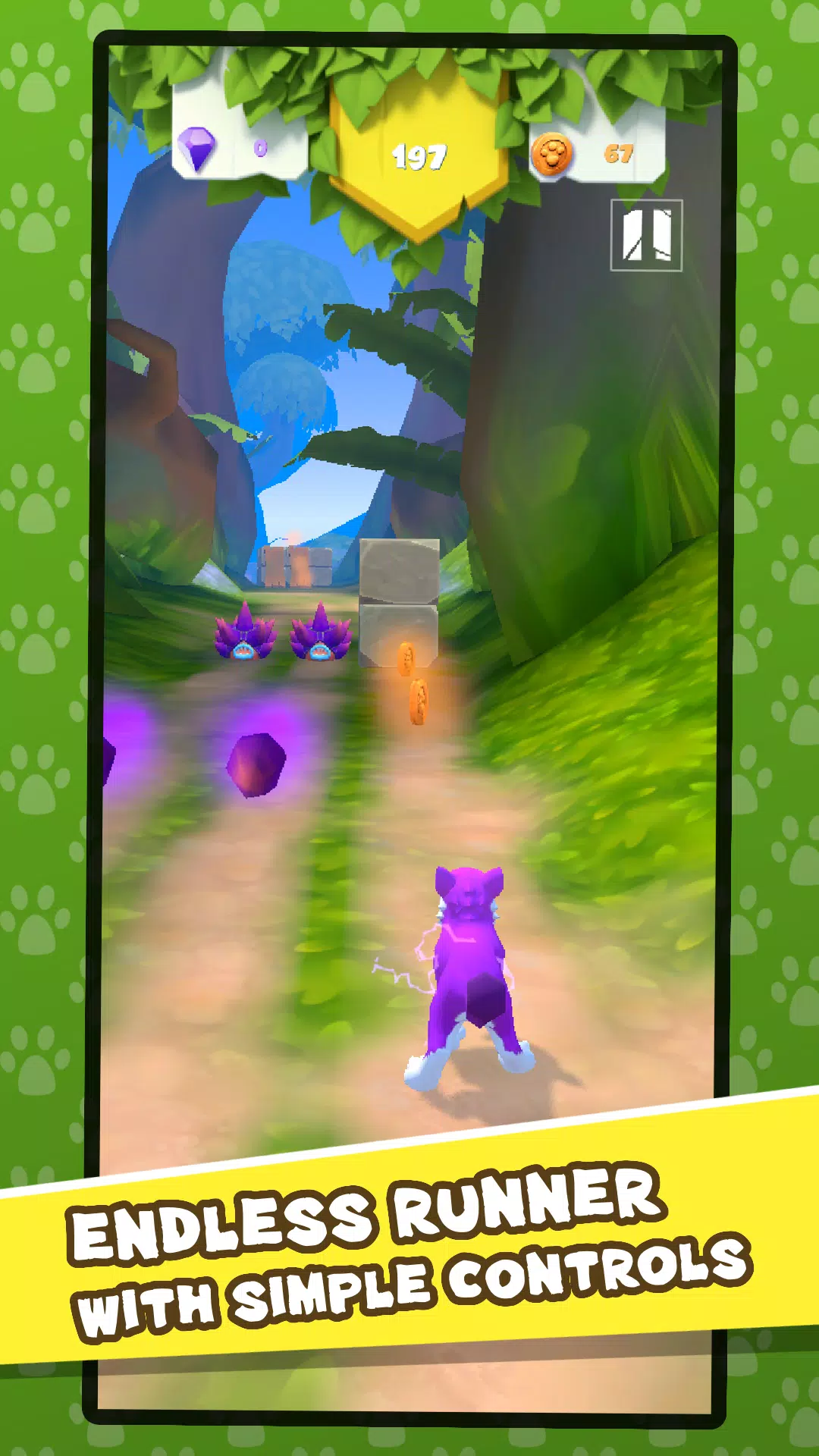 在这款无尽跑酷游戏中,与可爱的动物们一起穿梭于美丽的世界!游戏玩法简单,轻松休闲,还有许多可爱的生物等你解锁。