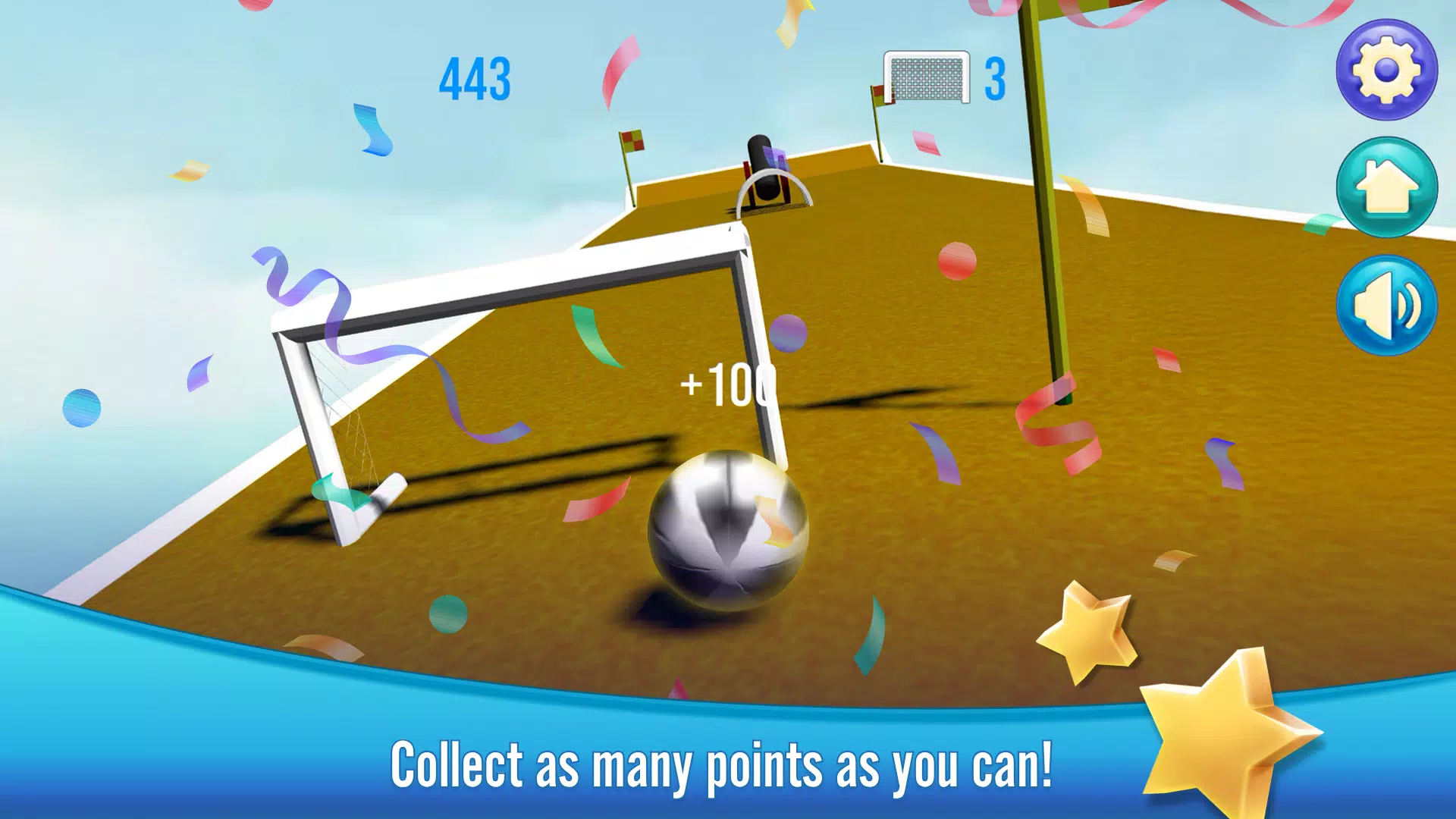 在《Slope》中,用你的足球冲过无数球门!从多个平台上滚下,尽可能多地进球!穿过隧道和环形赛道,获得额外积分,速度更快!但要小心:旗杆和踢球人等障碍物随时准备将你踢下平台,所以要躲避它们,尽可能多地得分!考验你的技巧,躲避尽可能多的障碍物,尽可能多地得分吧!