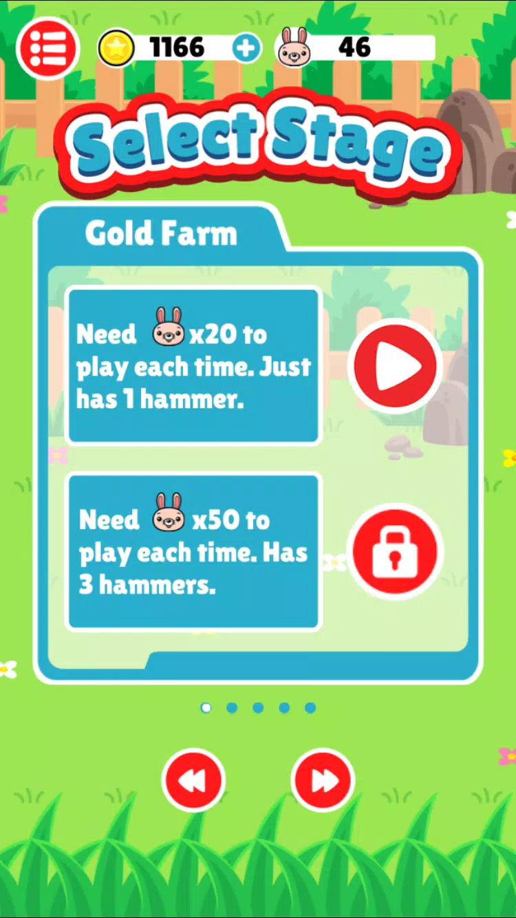 玩家必须在地鼠刚从洞里钻出来时就点击它们来得分。随着游戏的推进,地鼠会以更快的速度出现,考验玩家的反应能力和协调性。游戏中还会出现兔子,点击它们会扣分或获得特殊金币,这无疑增加了游戏的挑战性。