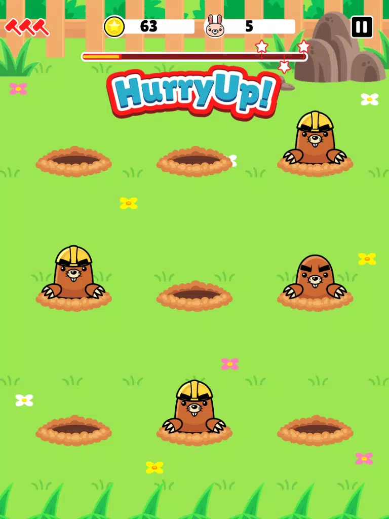 种类繁多的鼹鼠:游戏中有 7 种不同类型的鼹鼠,每种都有独特的外观和行为。这些鼹鼠以不同的速度和频率出现,让玩家保持警觉。