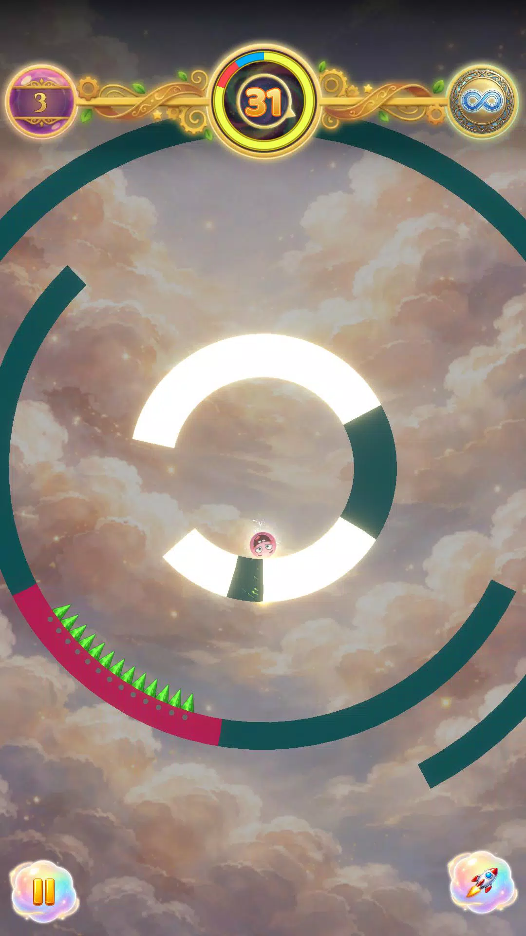 圆形光环以不同的速度和方向旋转。你唯一的任务就是在最佳时机跳跃穿梭于光环之间。