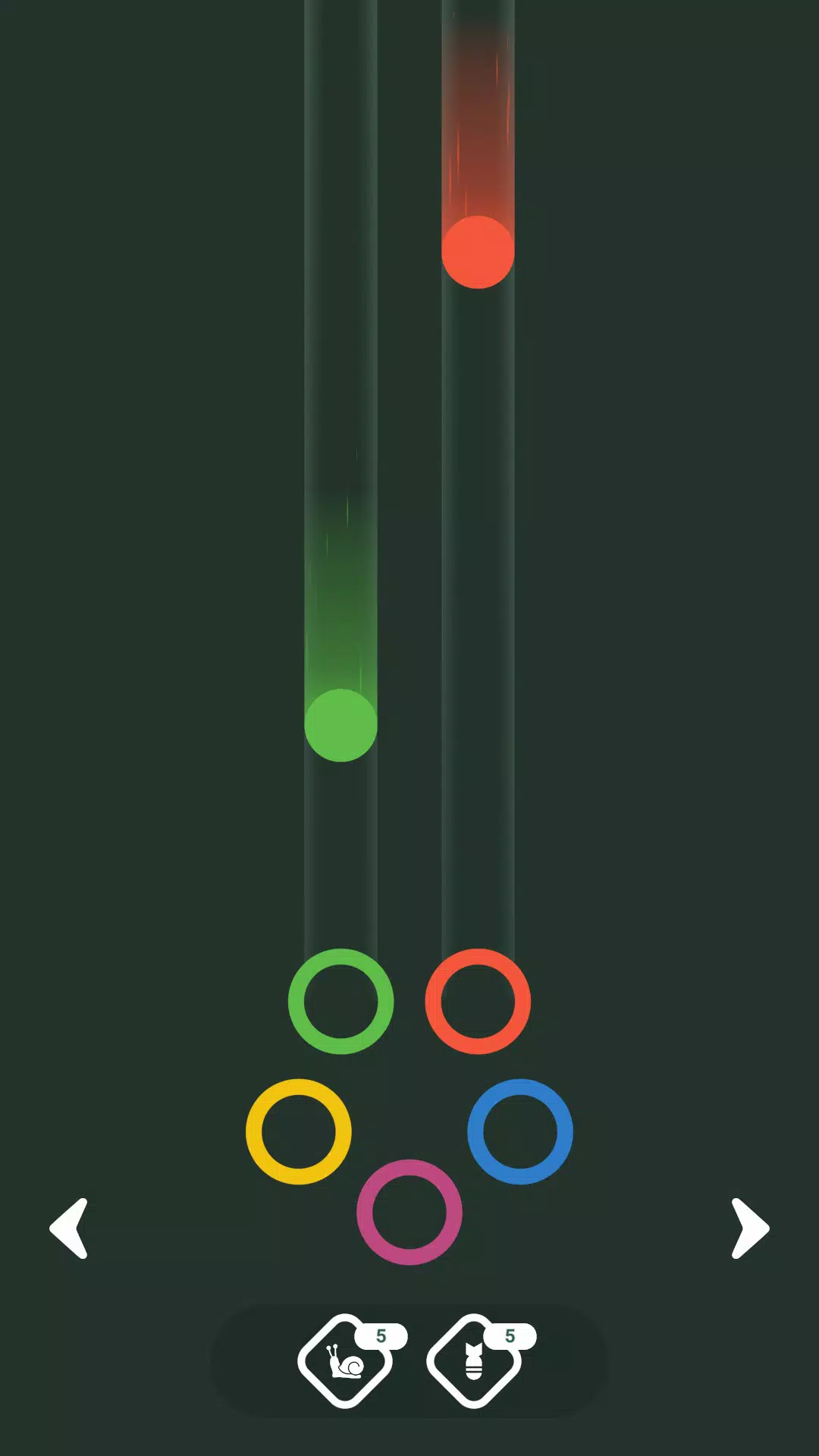 ★ 慢動作 – 暫時減慢所有下落球的速度,持續 10 秒,讓你有更多時間匹配顏色。