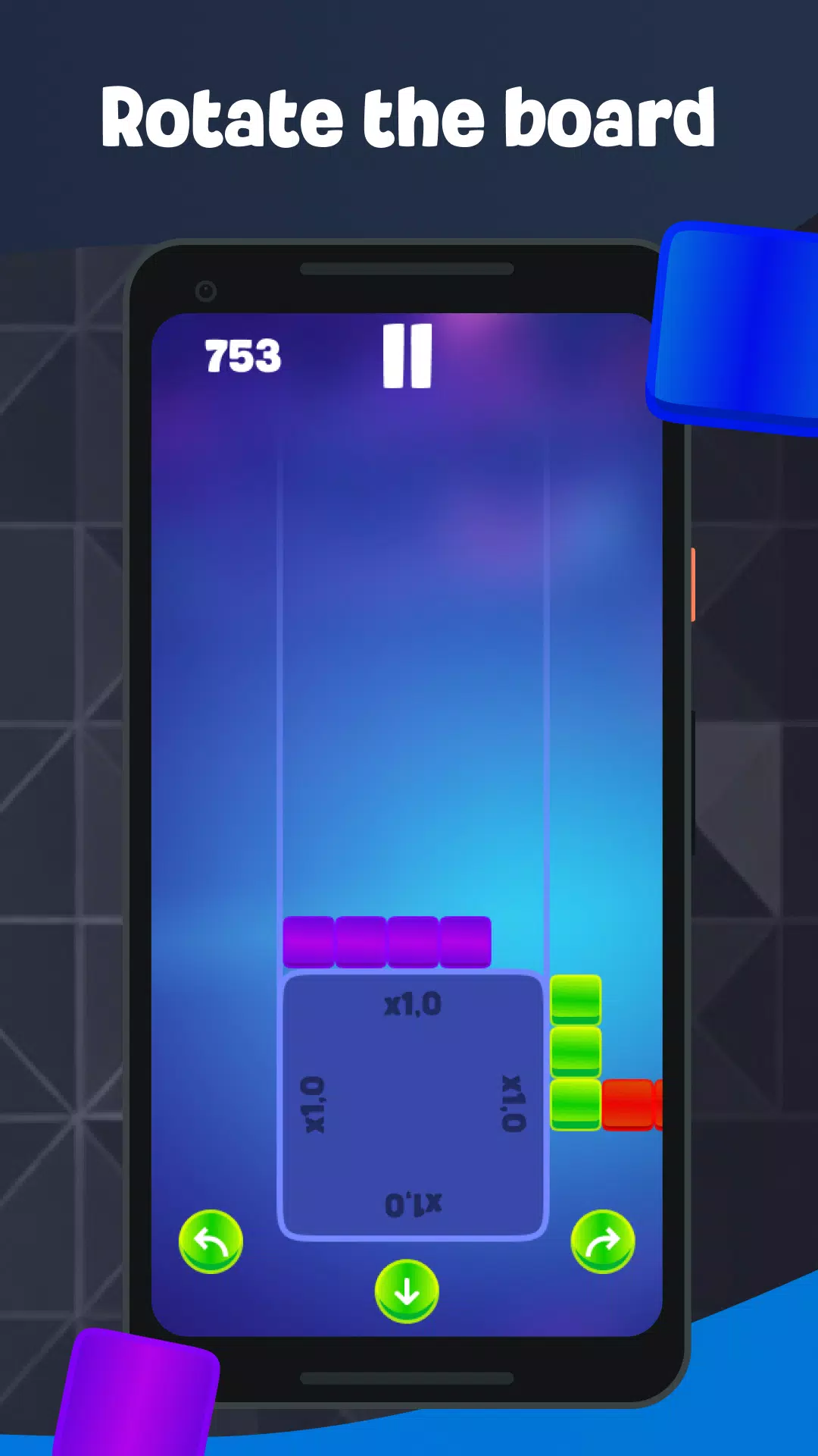 Topacio 的核心机制是旋转。你可以随时顺时针或逆时针旋转整个正方形棋盘。旋转会改变重力,迫使方块朝新的方向移动。这创造了持续的运动,并将熟悉的形状转化为全新的挑战。时机和方向与放置同样重要。