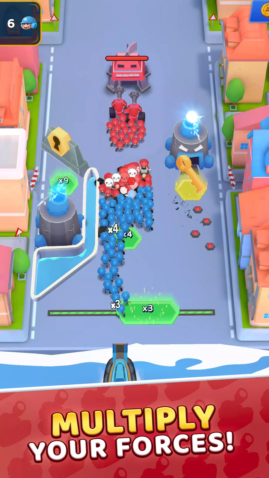 – 倍增方块与军队成长:快速穿过倍增方块,壮大你的军队。将一支小部队发展成一支强大的军队,然后利用这一优势赢得下一场战斗,让你的战略持续奏效。