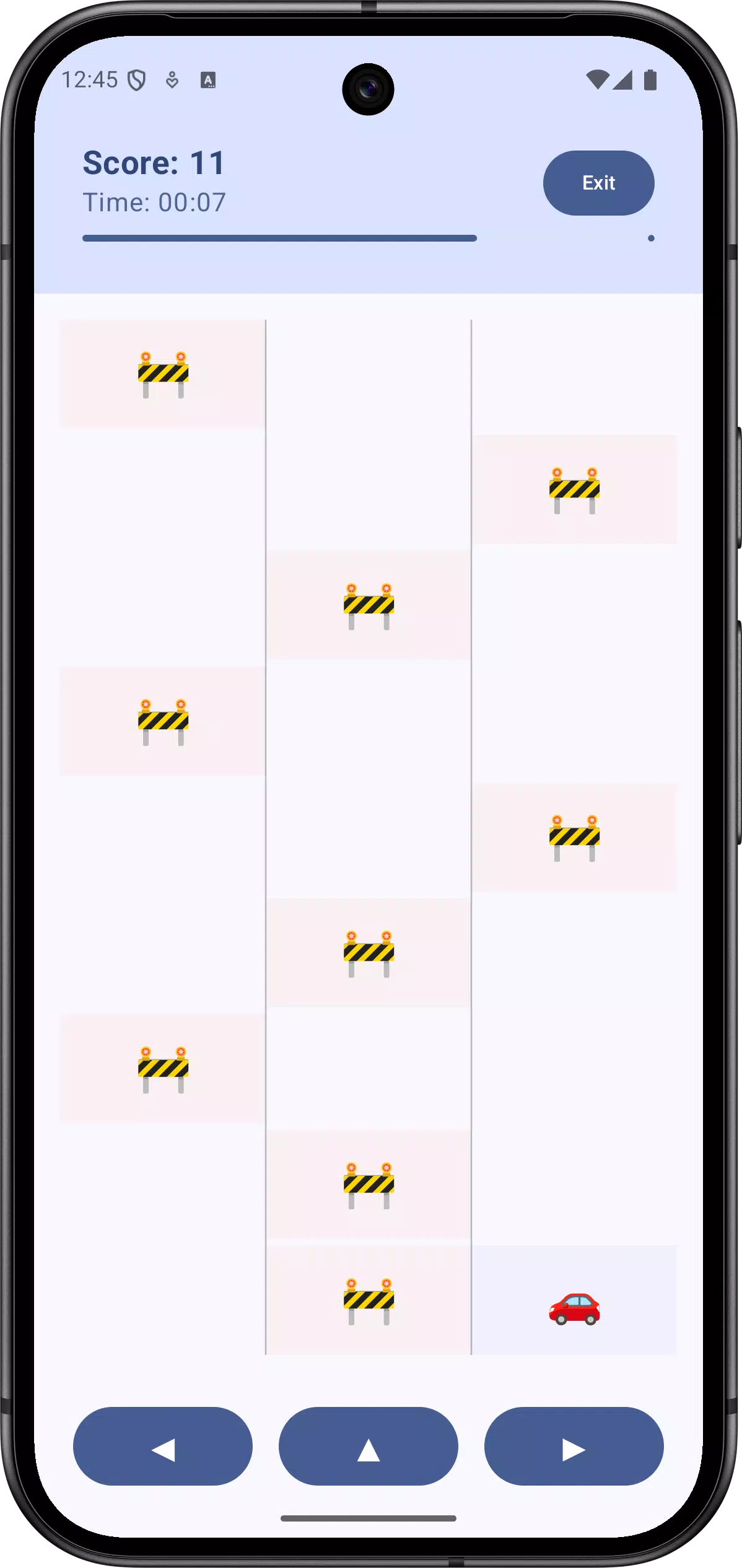 操控您的车辆,避开路障。切换车道或原地不动——每移动一步,道路都会向前推进。完成倒计时:每次移动后,进度条都会重置并逐渐加速。如果计时器耗尽,您的车辆将自动在当前车道继续前进。