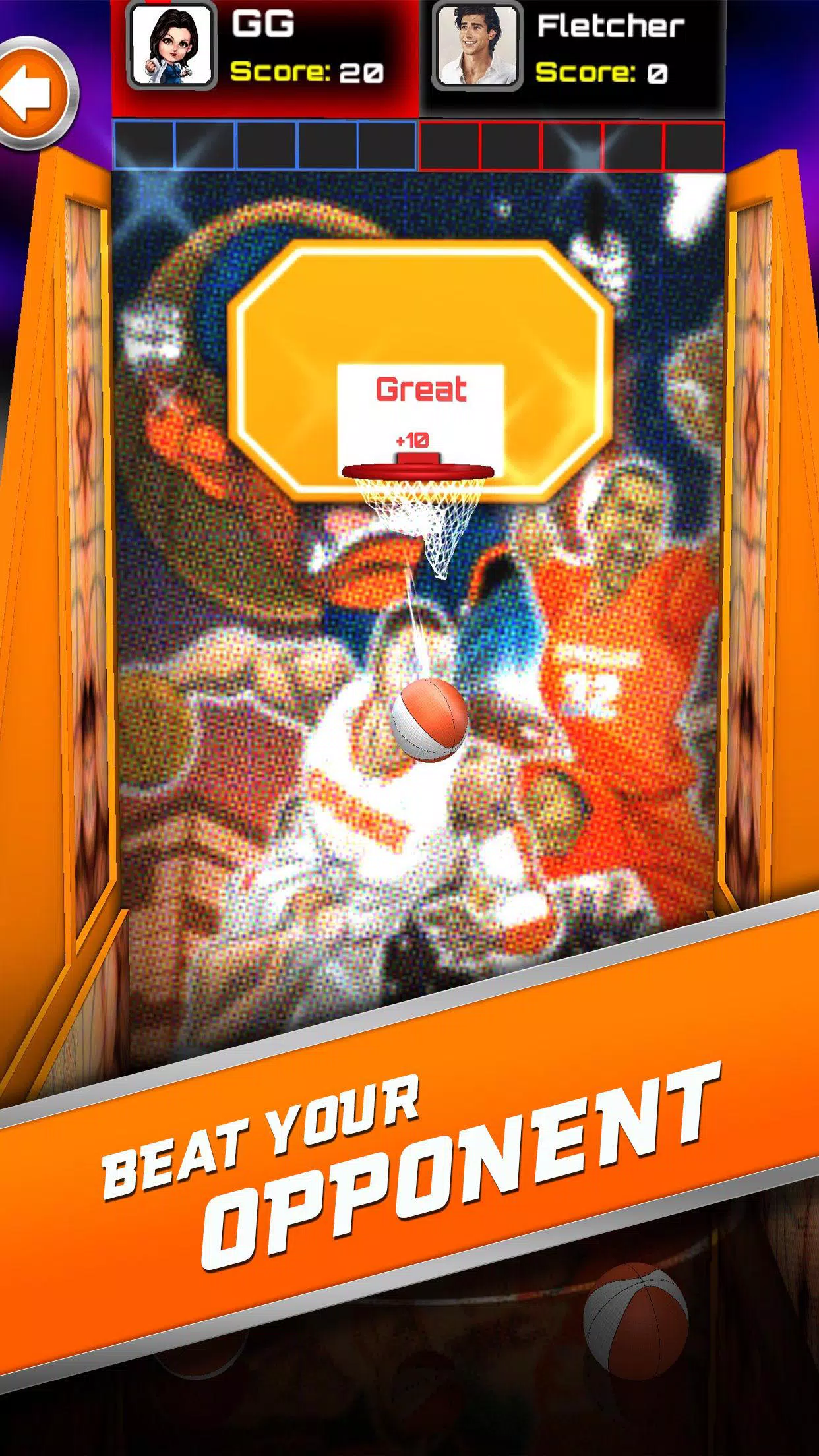 一款完美的篮球游戏,只需轻轻一划即可投篮,成为篮球冠军。