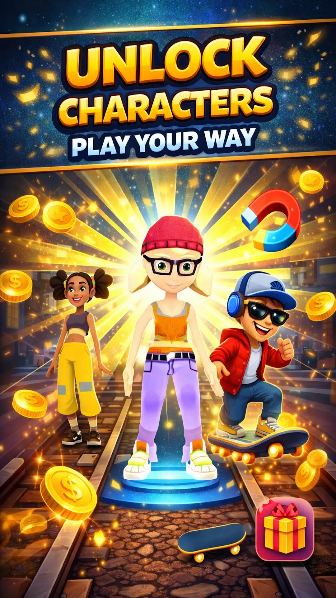 – 当你奔跑时,你必须收集金币,这些金币可以用来购买《Run – Train Surfing 3D》中的角色和物品。