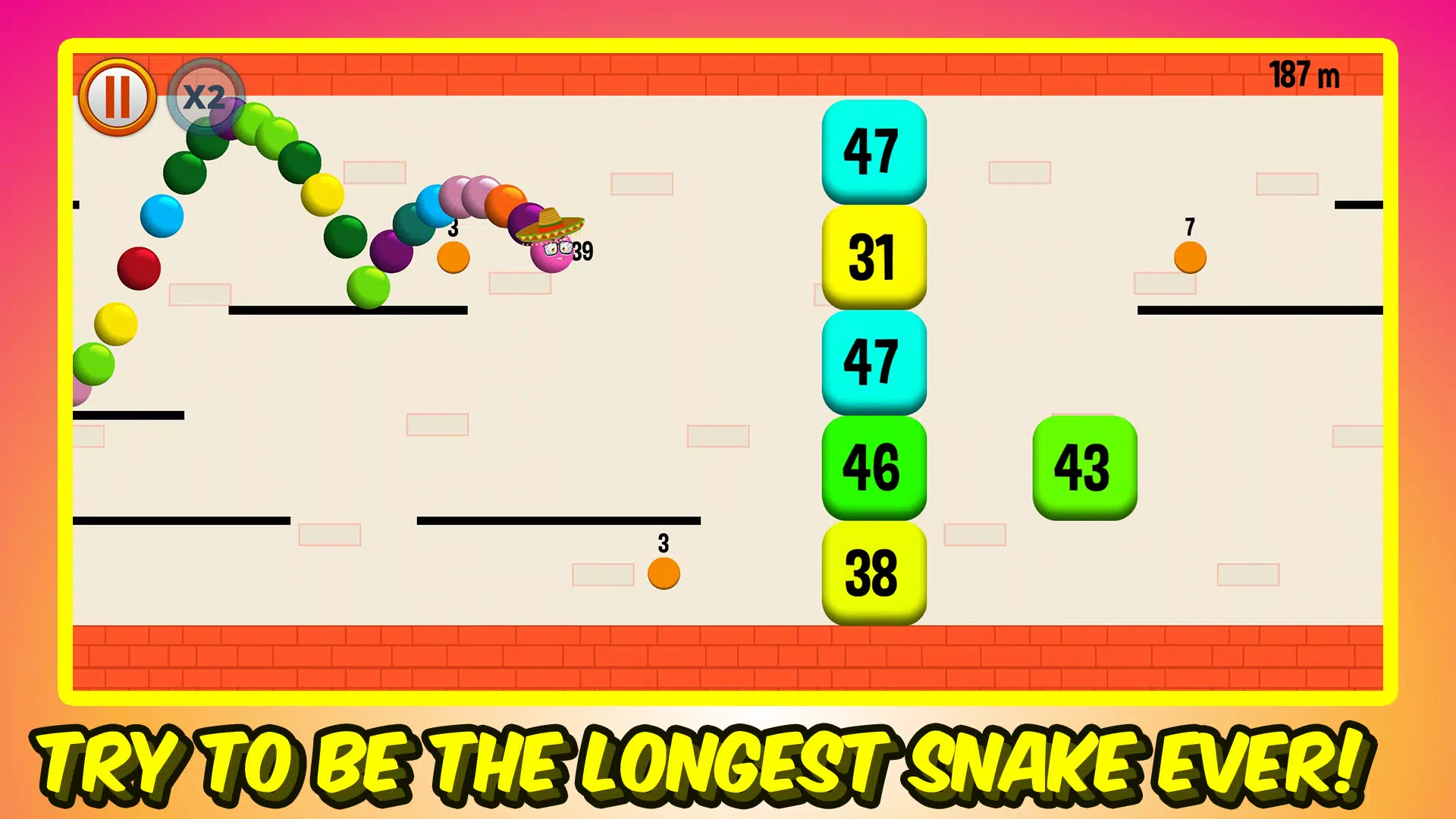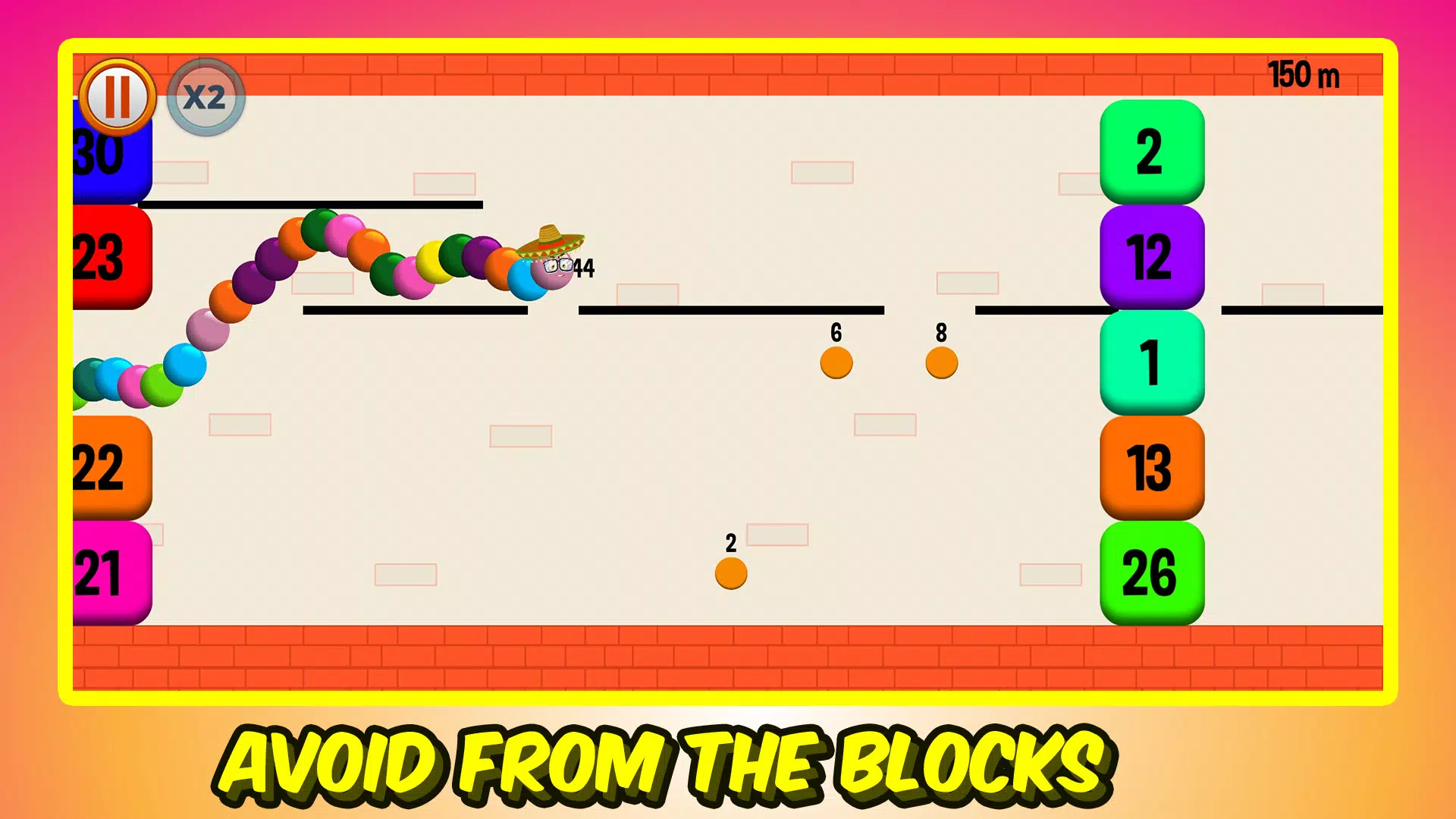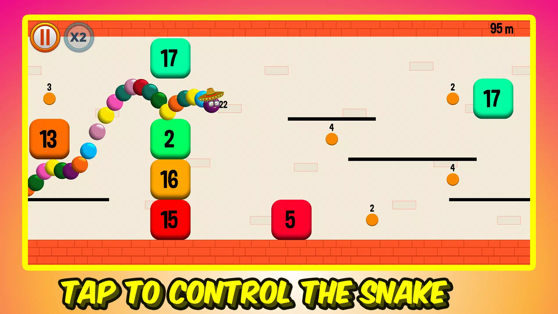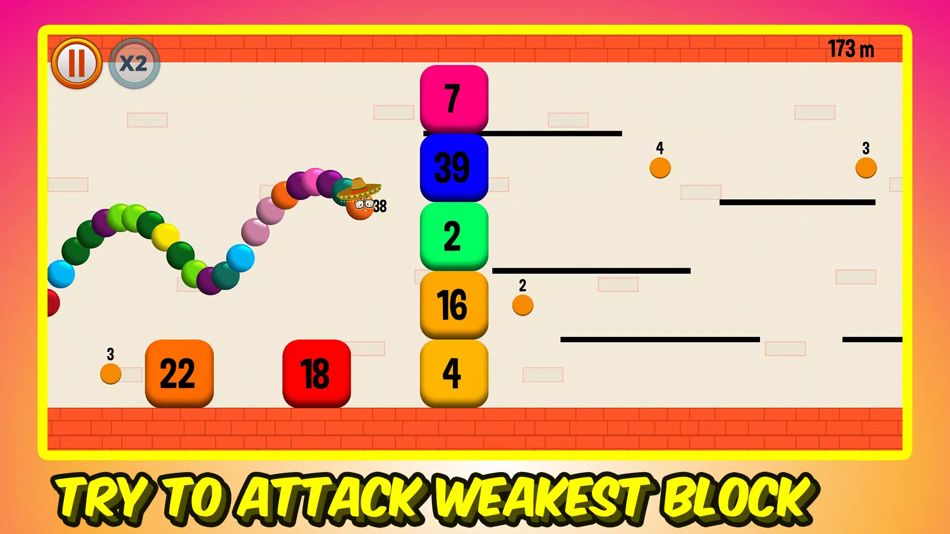 滑动手指移动蛇并收集额外的球。您的目标很简单:打破尽可能多的方块以获得最高分!但要小心,您需要足够的球才能打破编号的砖块。