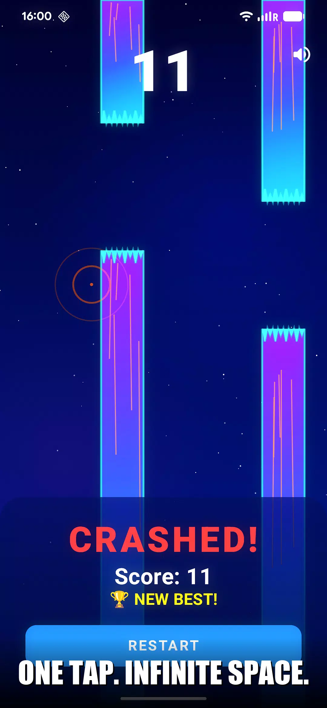 觉得自己拥有宇航员般的反应速度吗?《火箭躲避者》将带你体验一场精美绝伦、令人欲罢不能的太空冒险,考验你的反应能力。操控你的火箭穿越永无止境的炽热等离子屏障,躲避水晶状的太空柱,追逐银河系最高分——所有这一切,只需轻轻一点!