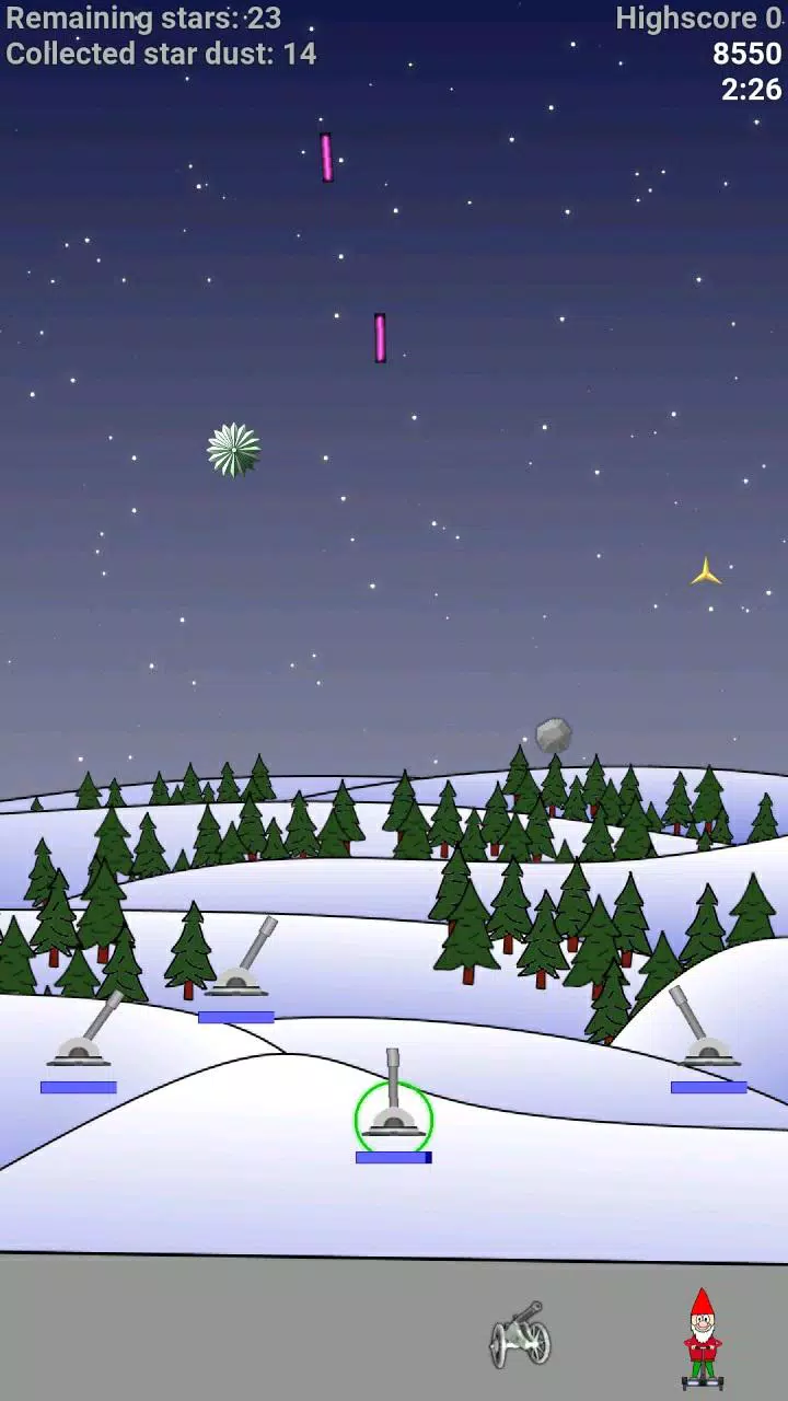 圣诞星辰射手是一款圣诞小游戏,你需要射下星星并收集它们留下的星尘。你还需要在来袭的陨石击中你的大炮或小矮人助手之前将其摧毁。在这个泡泡射击/导弹防御混合游戏中,星星和陨石会以各种模式飞过天空,你的挑战是尽可能多地击中它们。