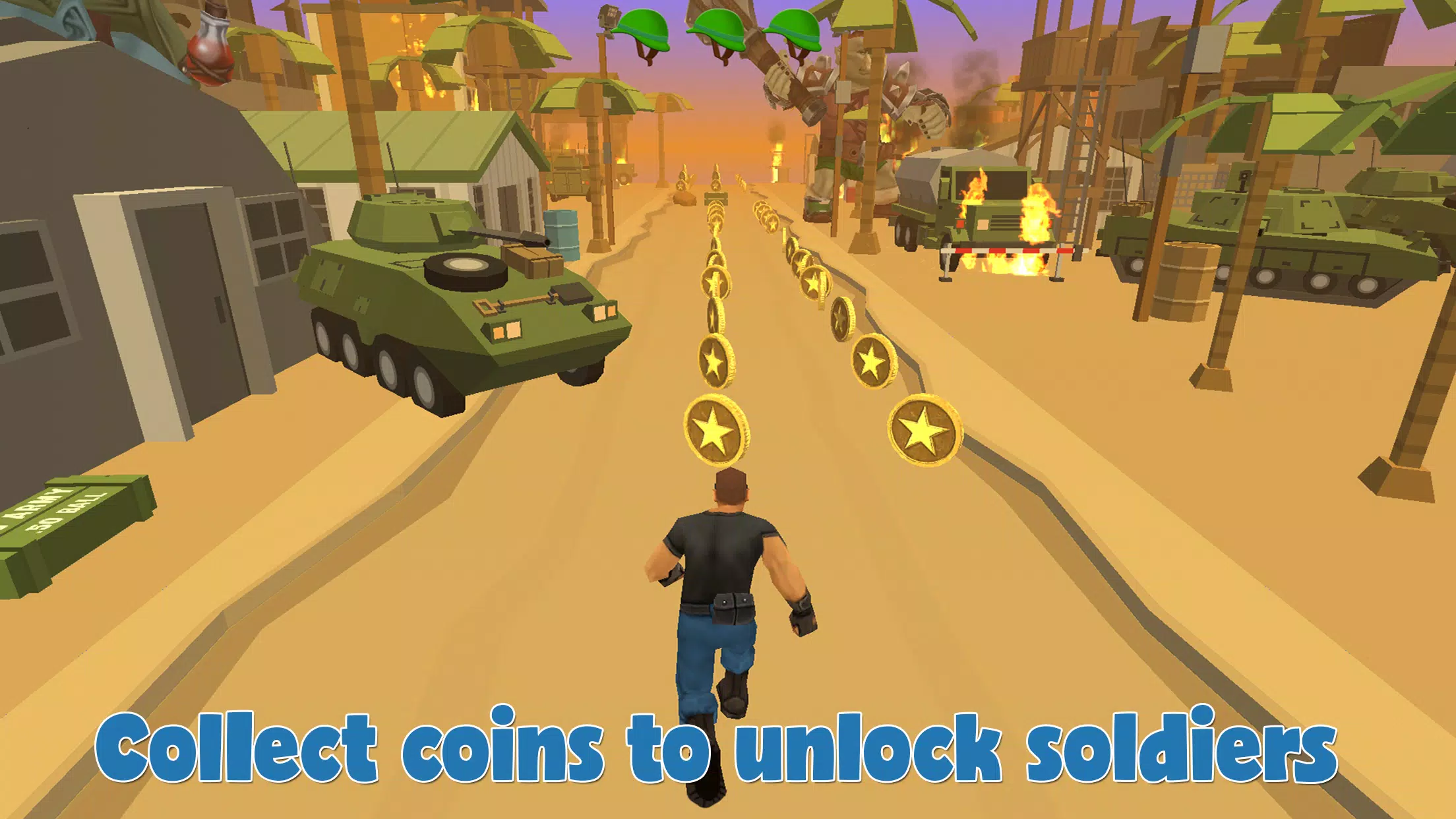 来自迷宫寺的战争和巨魔的酷无尽的跑步者。跑,跳过并翻过所有的障碍,以避免碰到追逐你的人。令人难以置信的声波士兵,他已经在军事领域接受过训练,所以准备好在玩这个游戏时像灯光一样快。在线排队从未如此有趣。