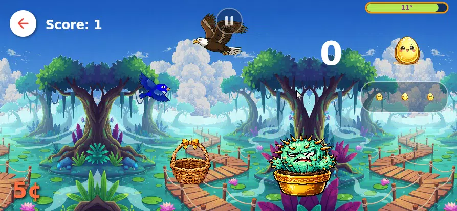 – **收集鸟蛋:** 在最佳时机将鸟蛋放入篮子,即可提升分数并赢取鸟币。