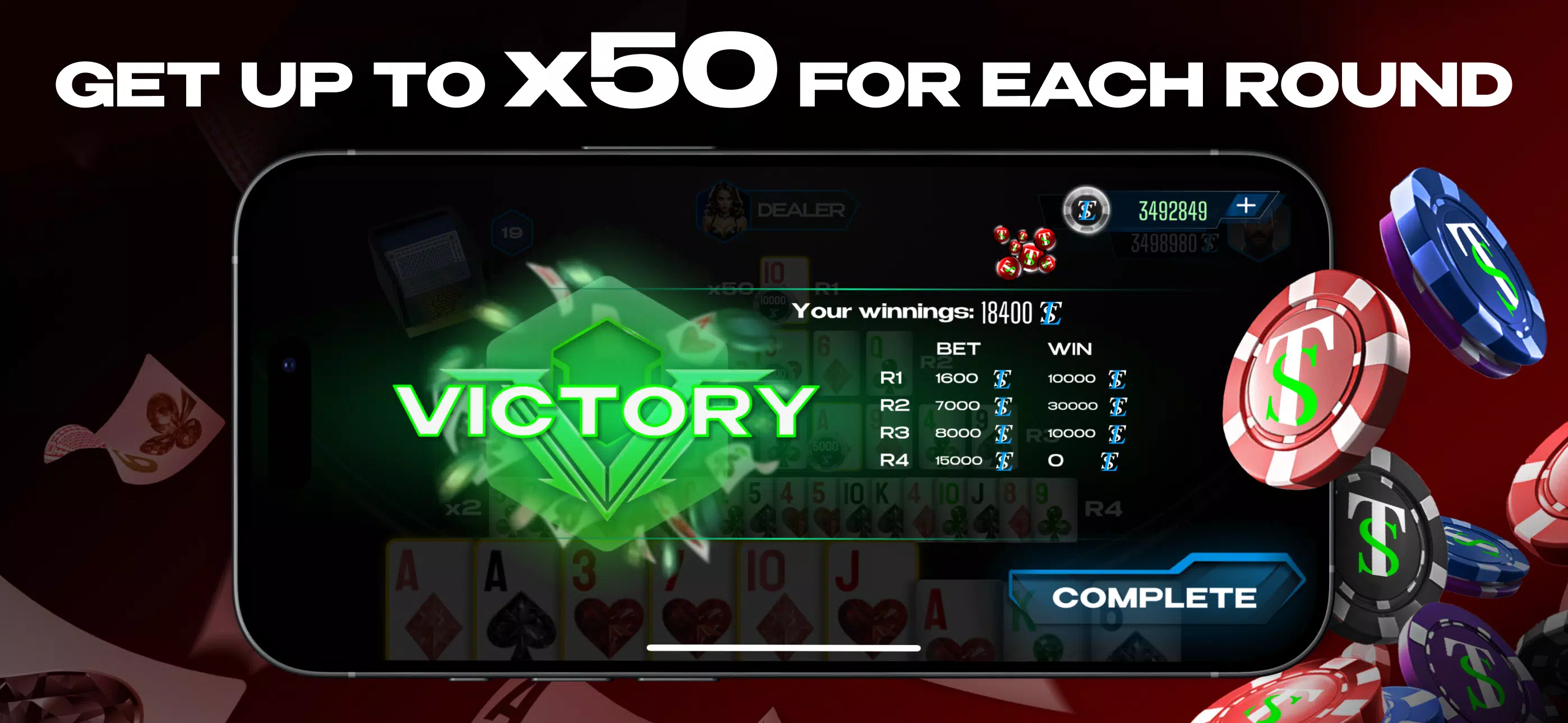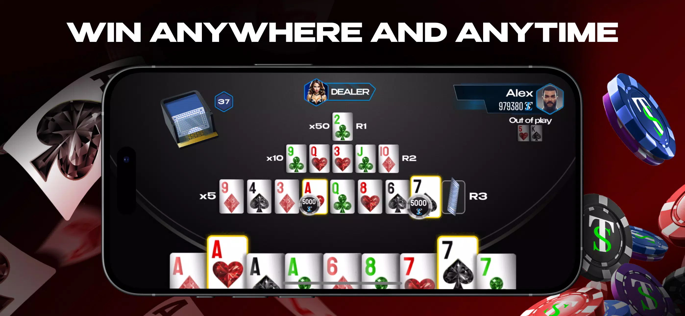 这款免费游戏采用经典的纸牌组,但机制独特。您可以通过猜出所选的牌,在几秒钟内将您的筹码增加 50 倍。如果您的牌没有被揭开,也不用担心,您还有 3 轮,荷官会揭开更多牌。