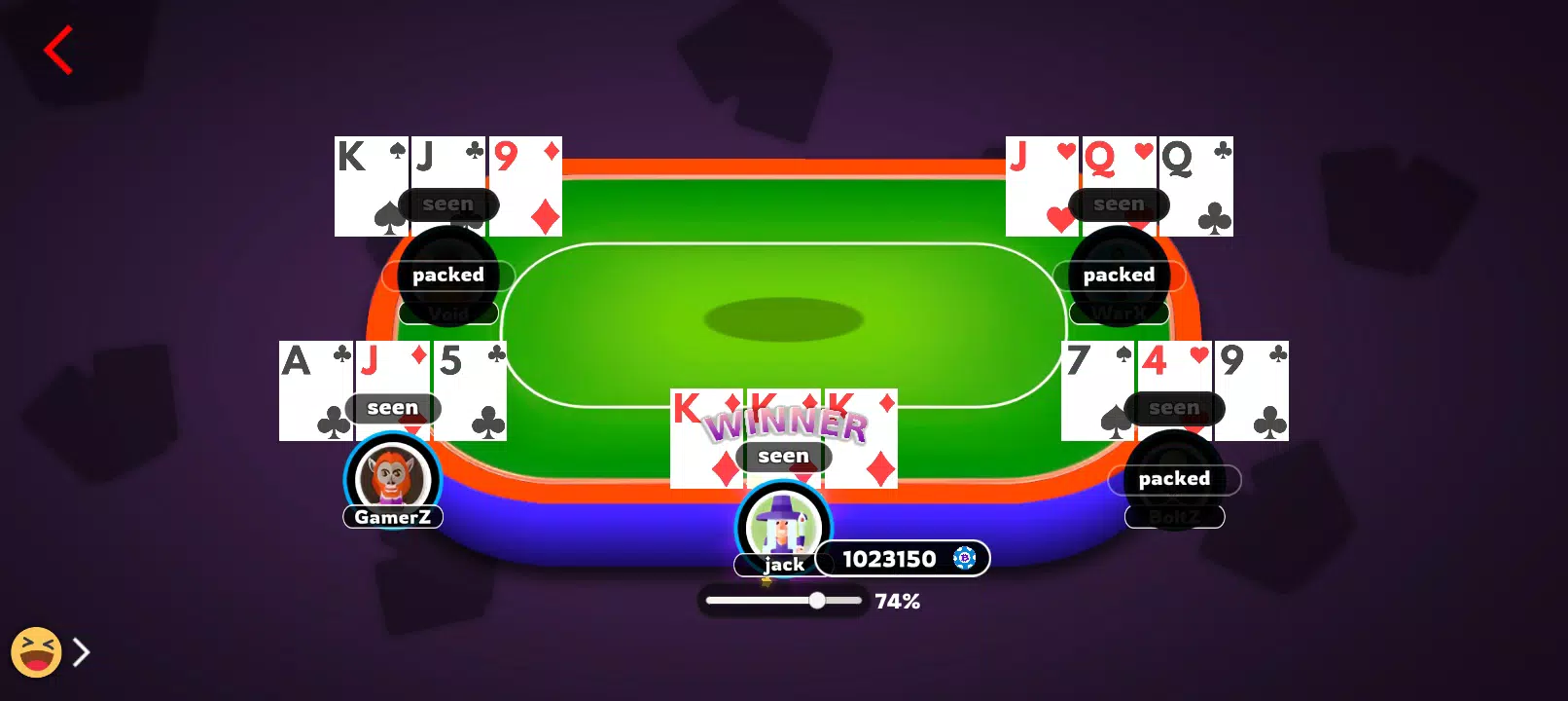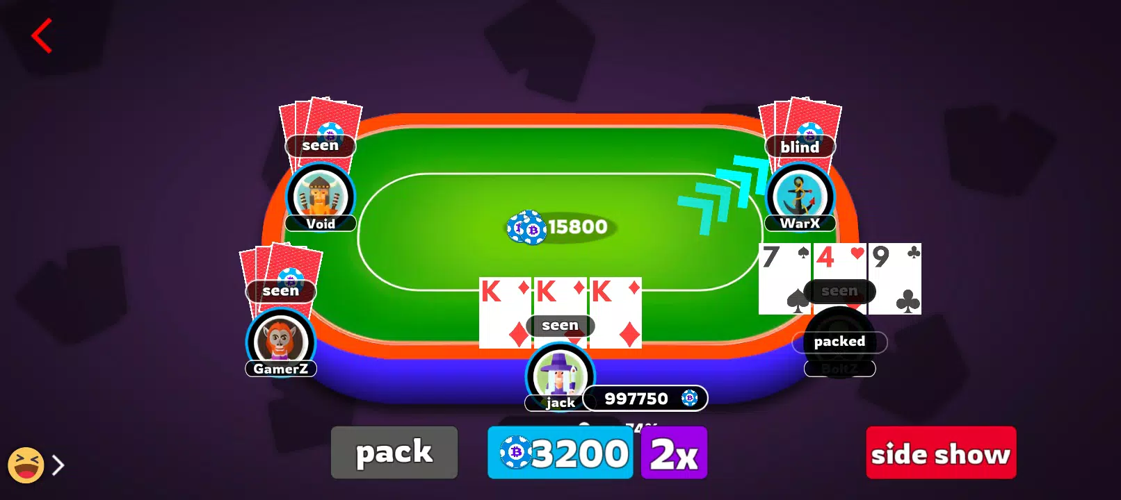 体验经典的 3 张牌印度纸牌游戏,流畅的操作、公平的游戏环境和精彩刺激的回合。
